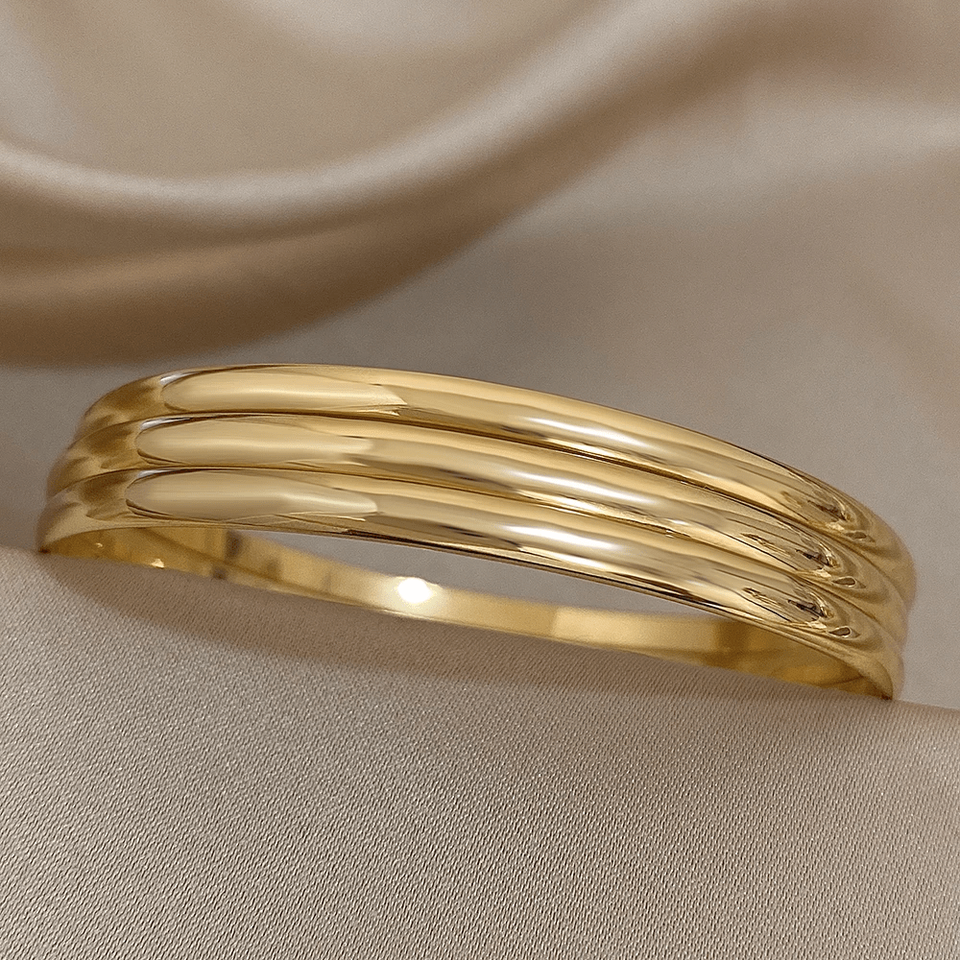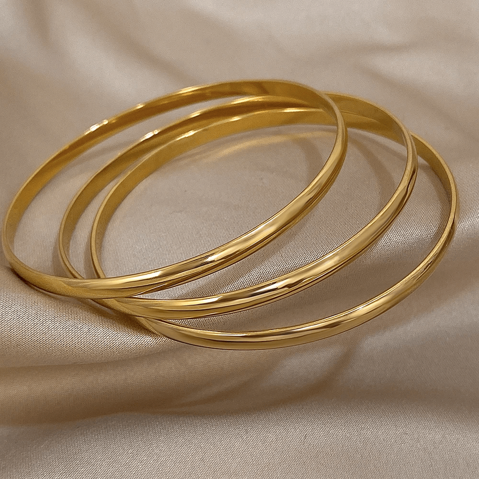 3pcs Glossy 18K Gold Plated Stainless Steel Bangle Bracelet for Womens