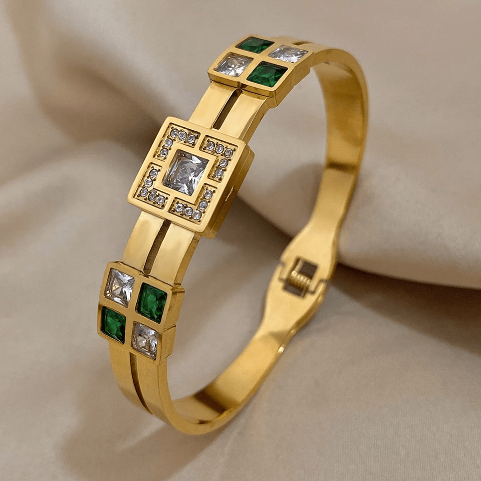 Luxury Zircon Bracelet, Wide Layered Stainless Steel Cuff Bangle, Gold Plated Opening Bracelet, Royal CZ Charm Bracelets, Wristband, Jewelry For Hand