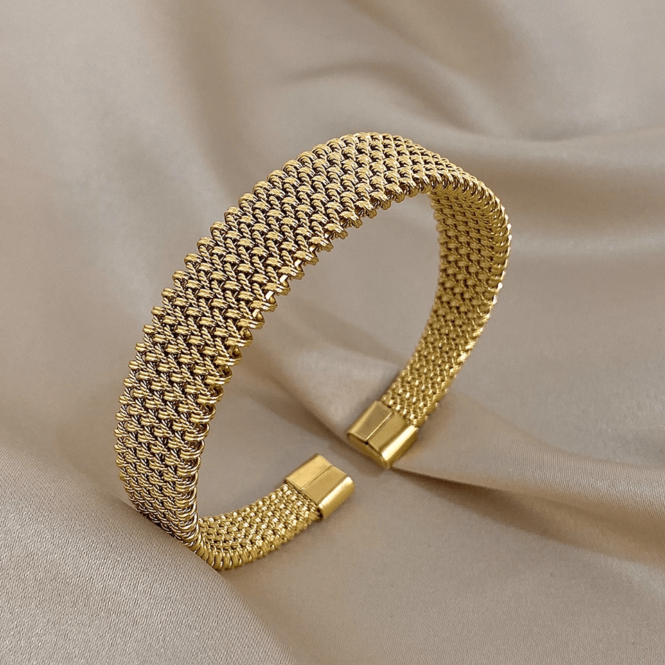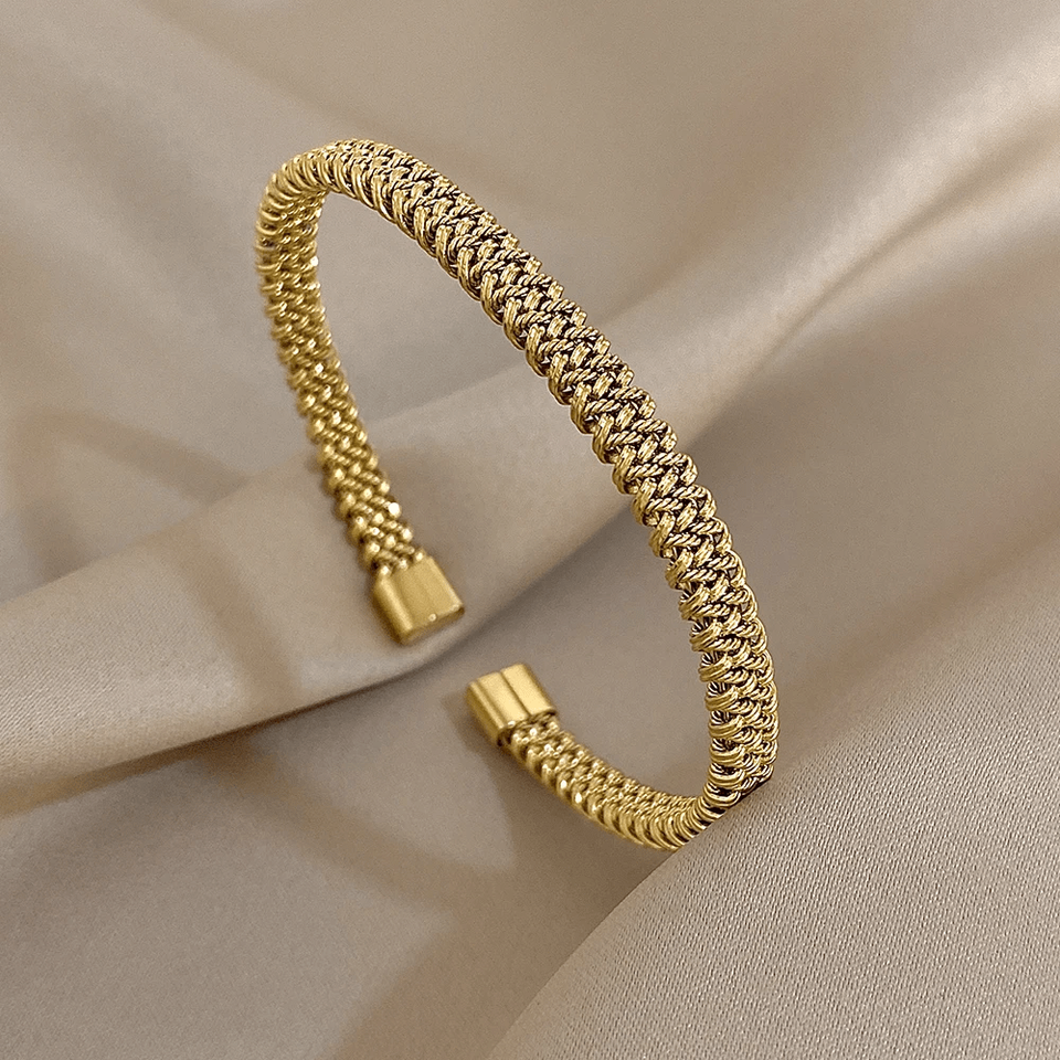 Vintage Golden Stainless Steel Weave Bangle Bracelets Waterproof Jewelry