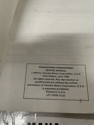 1999 2000 2001 2001 Yamaha YFM400FWNM/NMC Manuale di riparazione del servizio OEM, Supplementi manuali di servizio e Manuale di assemblaggio
