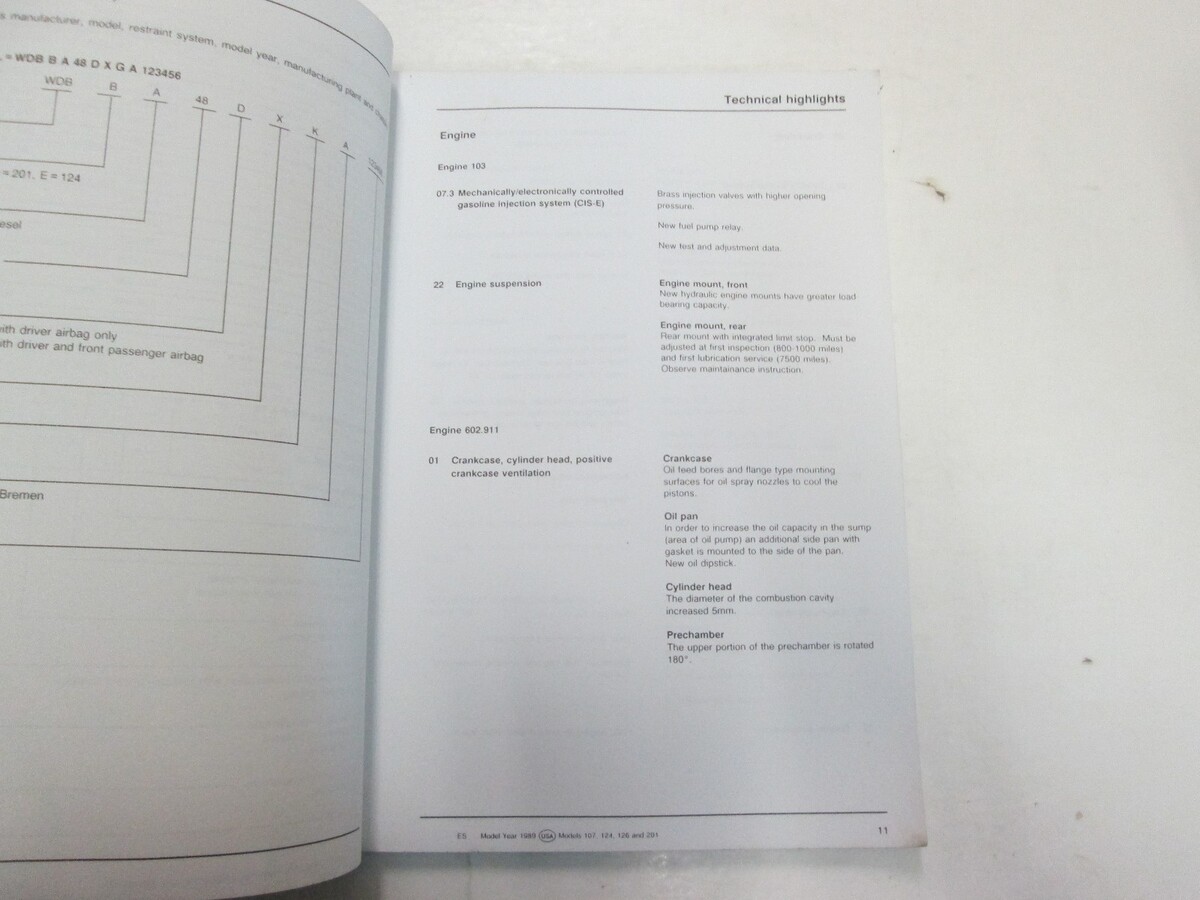 1988 Mercedes Modelli 107 124 126 201 Intro A Servizio Manuale Fabbrica OEM Deal
