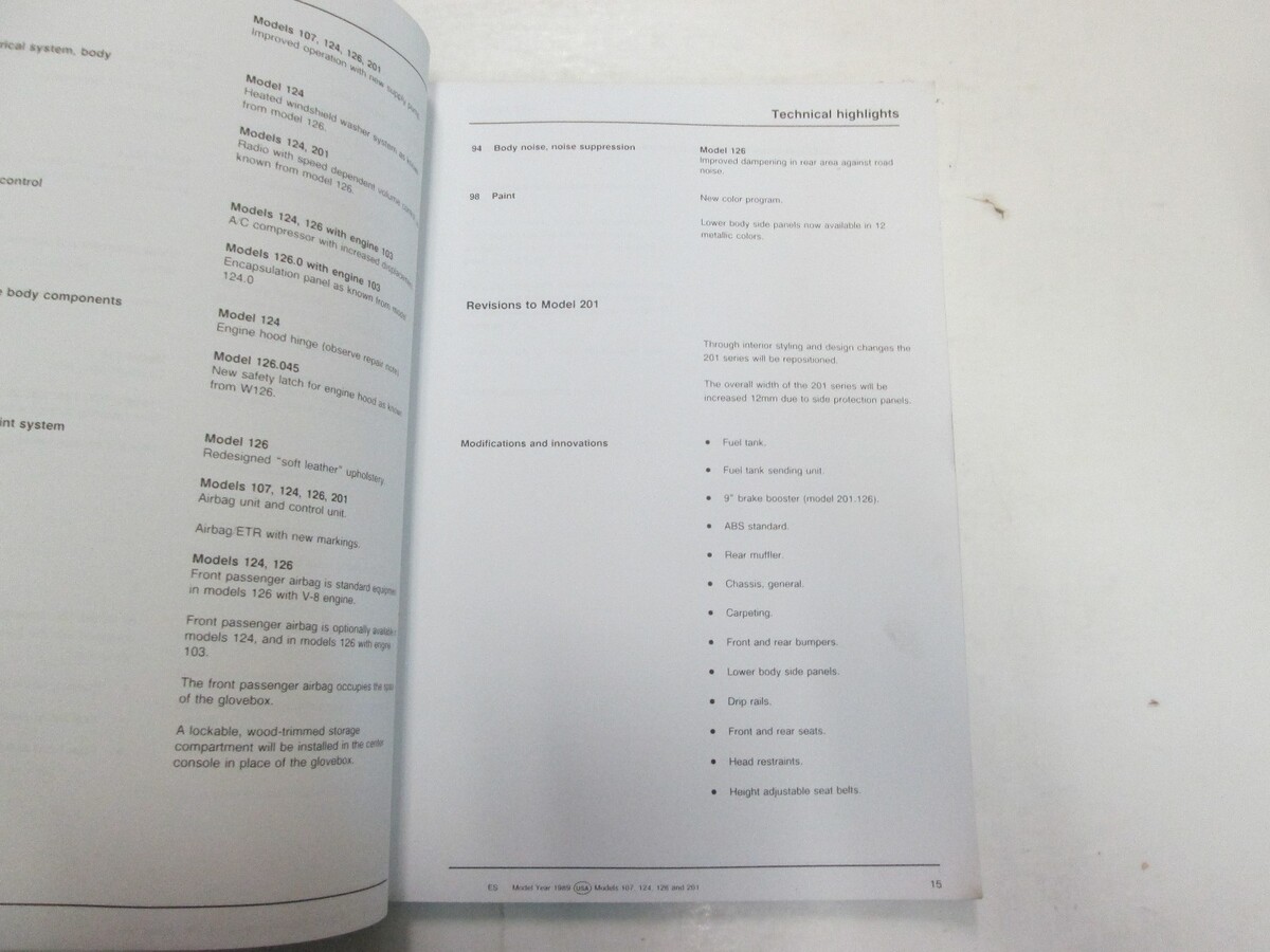 1989 Mercedes Benz Modello 107 124 126 201 Prelim Intro Into Servizio Manuale
