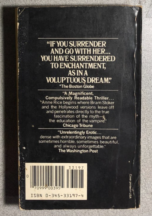 INTERVIEW WITH THE VAMPIRE by Anne Rice (1985) Ballantine horror paperback