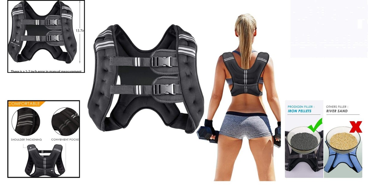 Chemical-Free Iron Sands: Stuffed with iron sands, this vest supports a variety of workouts including strength training, muscle building, stair climbing, running, and more to boost cardiovascular conditioning and body strength.