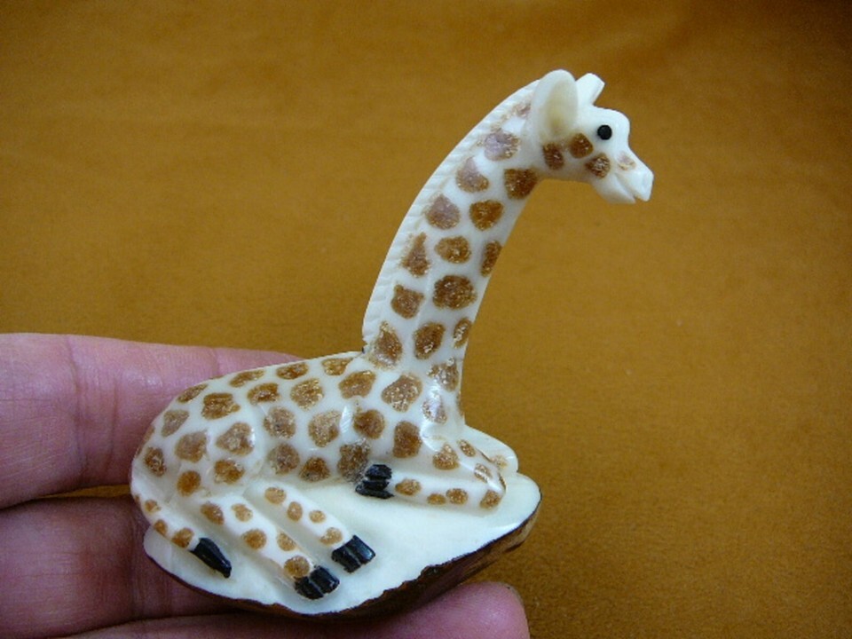 (#TNE-GIR-226-D) Beautifully hand crafted tagua nut figurine of a baby, white SITTING GIRAFFE with tan spots; measures 2-15/16 tall x 1-1/2? wide x 2-7/8? long.