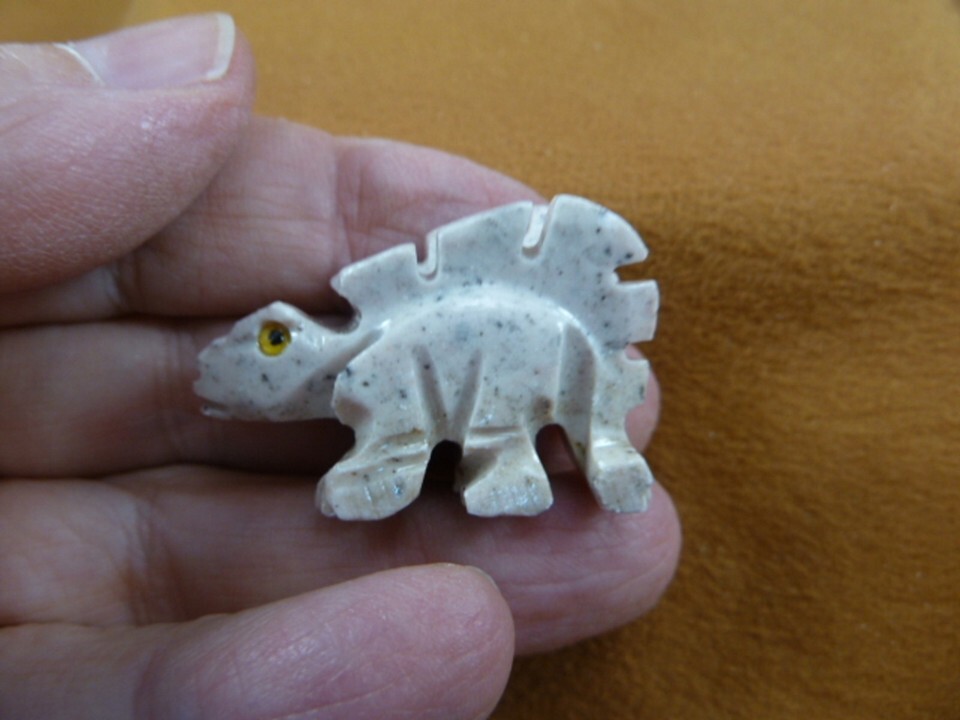 Y-DIN-ST-46) little white gray Stegosaurus DINOSAUR gem SOAPSTONE dino figurine
