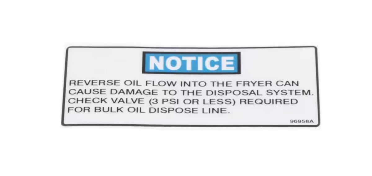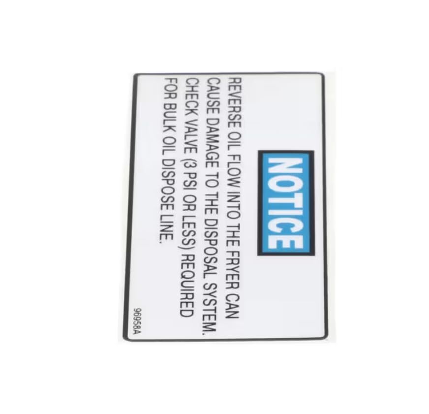 Fits Henny Penny 96958A Label, Notice, Check Valve