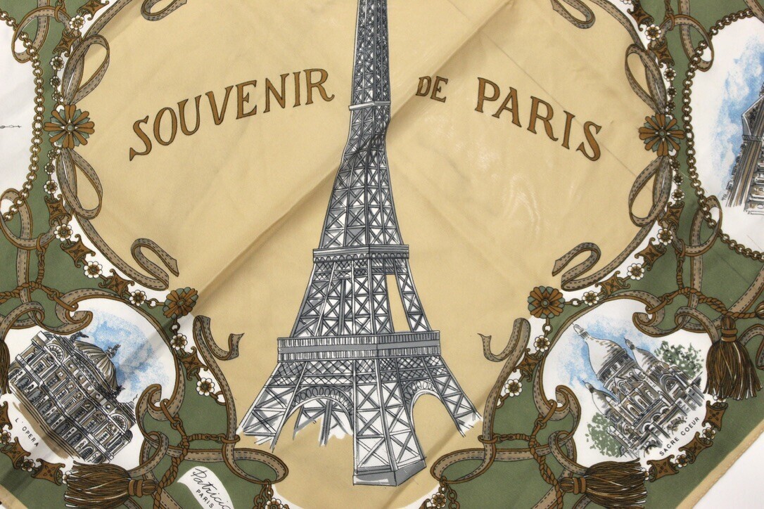 Vintage Patricia Paris Womens Square Scarf Eiffel Tower Souvenir 30" Square