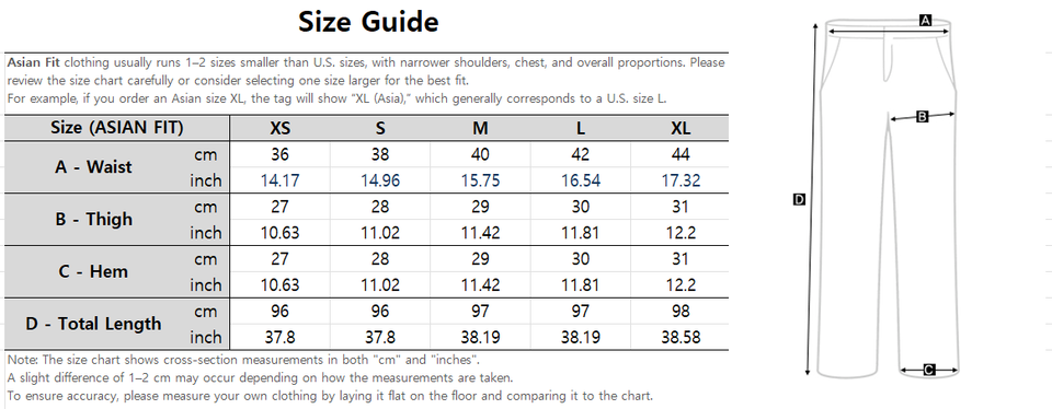 Asian Fit refers to clothing tailored for body shapes commonly found in Asian populations. These items typically run 1-2 sizes smaller than U.S. sizes, with narrower shoulders, chest, and overall proportions. Please check the size chart carefully or consider sizing up for the best fit.