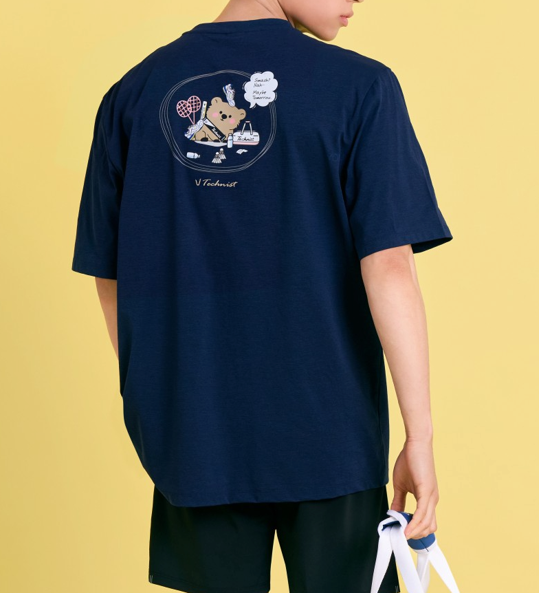 TECHNIST Unisex Badminton T-Shirts Overfit Casual Top Tee Navy AsiaFit TNT56016