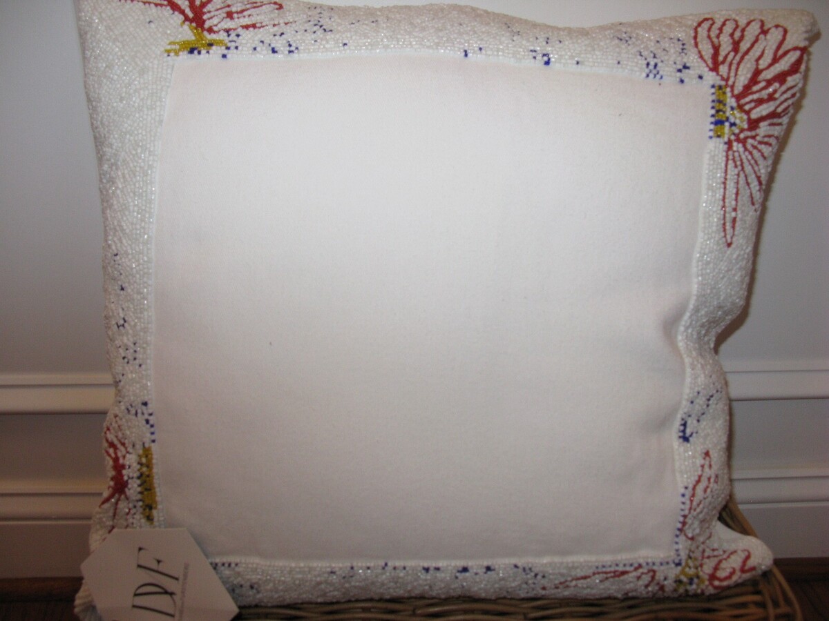 Diane Von Furstenberg White Beaded Large Throw Deco Pillow NWT