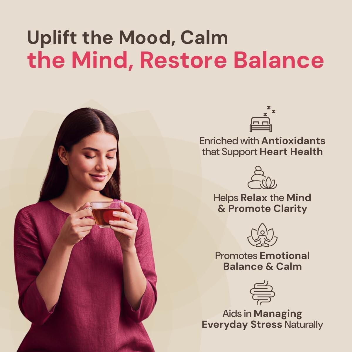 Maharishi Ayurveda Organic Certified Rose Hibiscus Herbal Tea | With Rose, Hibiscus, Fennel Chamomile | Supports Calm Mind, Mood Balance Relaxation | 20 Tea Bags (30g) is a premium Ayurvedic herbal tea crafted using time honoured traditions and organically certified ingredients. This thoughtfully blended formulation is designed to refresh the senses, support hydration, and promote skin wellness, making it an ideal choice for daily wellness rituals. Each ingredient is carefully sourced and gently processed to preserve its natural potency, aroma, and flavours. Free from artificial colours, flavours, and preservatives, this tea delivers a smooth, refined taste with every cup. Perfect for mindful mornings or relaxing evenings, this tea integrates seamlessly into modern lifestyles while honouring ancient wisdom. Enjoy a comforting brew that nourishes the body, soothes the senses, and supports long-term balance. A truly elevated tea experience for those who value purity, authenticity, and holistic well-being.