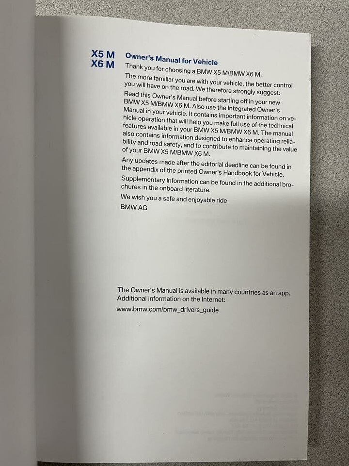 2016 BMW X5 M X6 M Owner Owners Operators Manual OEM This manual is published by BMW, and are the same manuals that come with the Vehicle if you have further questions feel free to message us We will leave POSITIVE Feedback after we receive your payment. Please do not forget to give us POSITIVE Feedback and FIVE Stars on all of the Detailed Seller Ratings! If you are not satisfied with your shopping Experience, please contact us to get a solution before you decide to leave a NEUTRAL or a NEGATIVE Feedback, We will do our best to solve any problems for you as soon as possible. We will provide you with the BEST POSSIBLE service because the POSITIVE Feedback and FIVE Stars are what we are striving for. Please email me through "My Messages" or "Ask Seller Questions" if you have any question