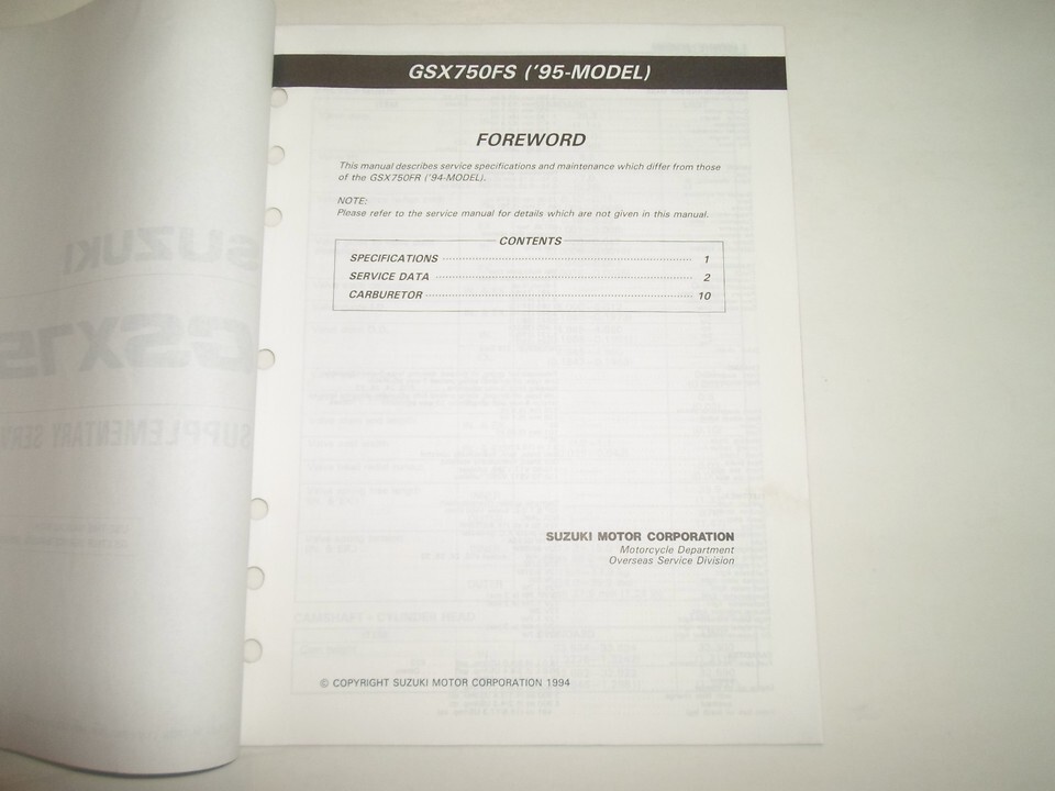 Manuel De Service Supplémentaire D'Usine OEM Suzuki GSX750F 1995 995013718003E