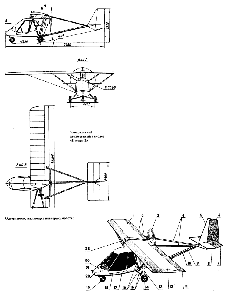 Ptenets-2 microplane is a high-wing parasol aircraft designed as an ultra-light aircraft based on a hang glider configuration.