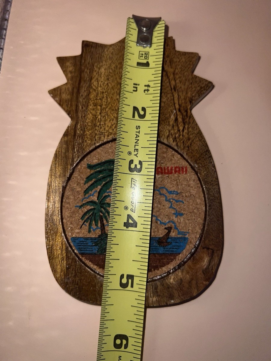 Vintage Hawaii Coasters Set Wooden Cork Pineapple Shaped Drink Coasters