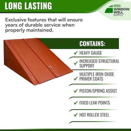 Bullet point: STRONG, DURABLE MATERIAL: Crafted from 12 gauge steel, our bulkhead doors ensures long-lasting strength and resilience. Its robust construction is built to withstand various weather conditions and potential intruders. The heavy-duty material provides a reliable barrier, making it ideal for protecting your basement or cellar. Trust this durable design to offer superior protection and peace of mind for years to come.