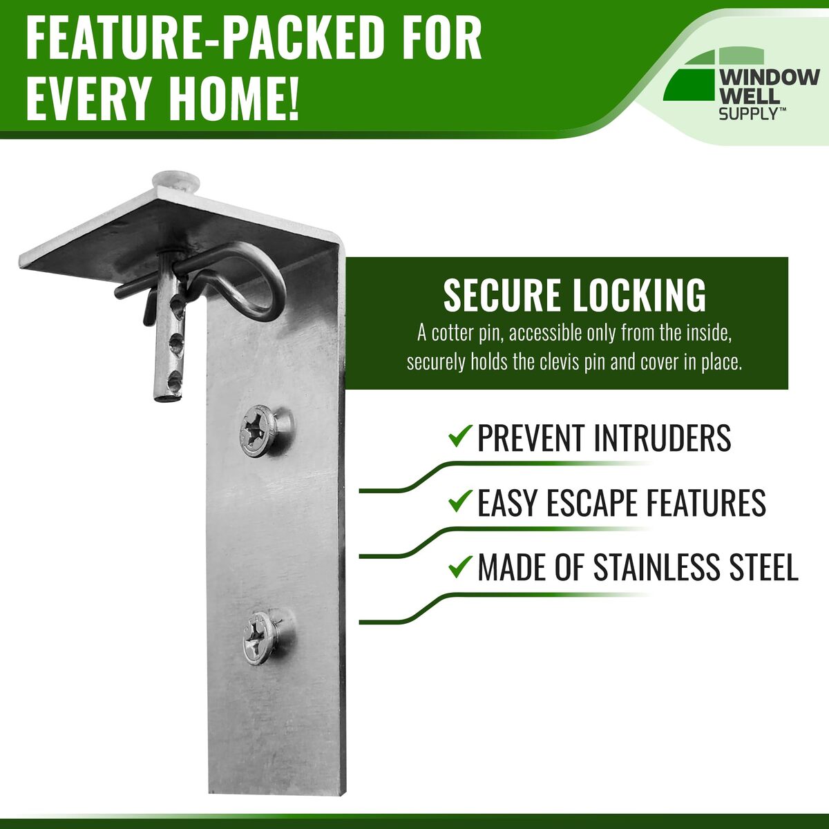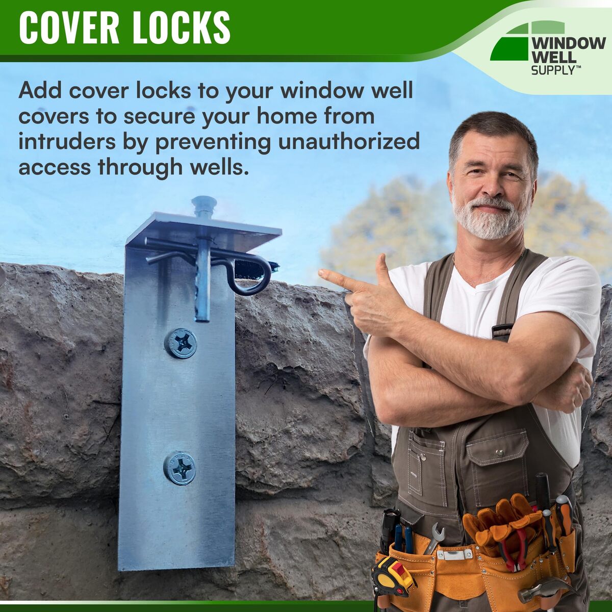 Bullet point: SECURE LOCKING MECHANISM FOR ULTIMATE PROTECTION: Our Locks for basement window covers feature a reliable locking system that provides enhanced security and peace of mind for customers. This robust mechanism ensures that your window well covers remain securely in place, preventing unauthorized access while allowing for easy way out in emergencies. Homeowners can trust that their basement windows are protected, making this an essential addition to any safety-conscious home.