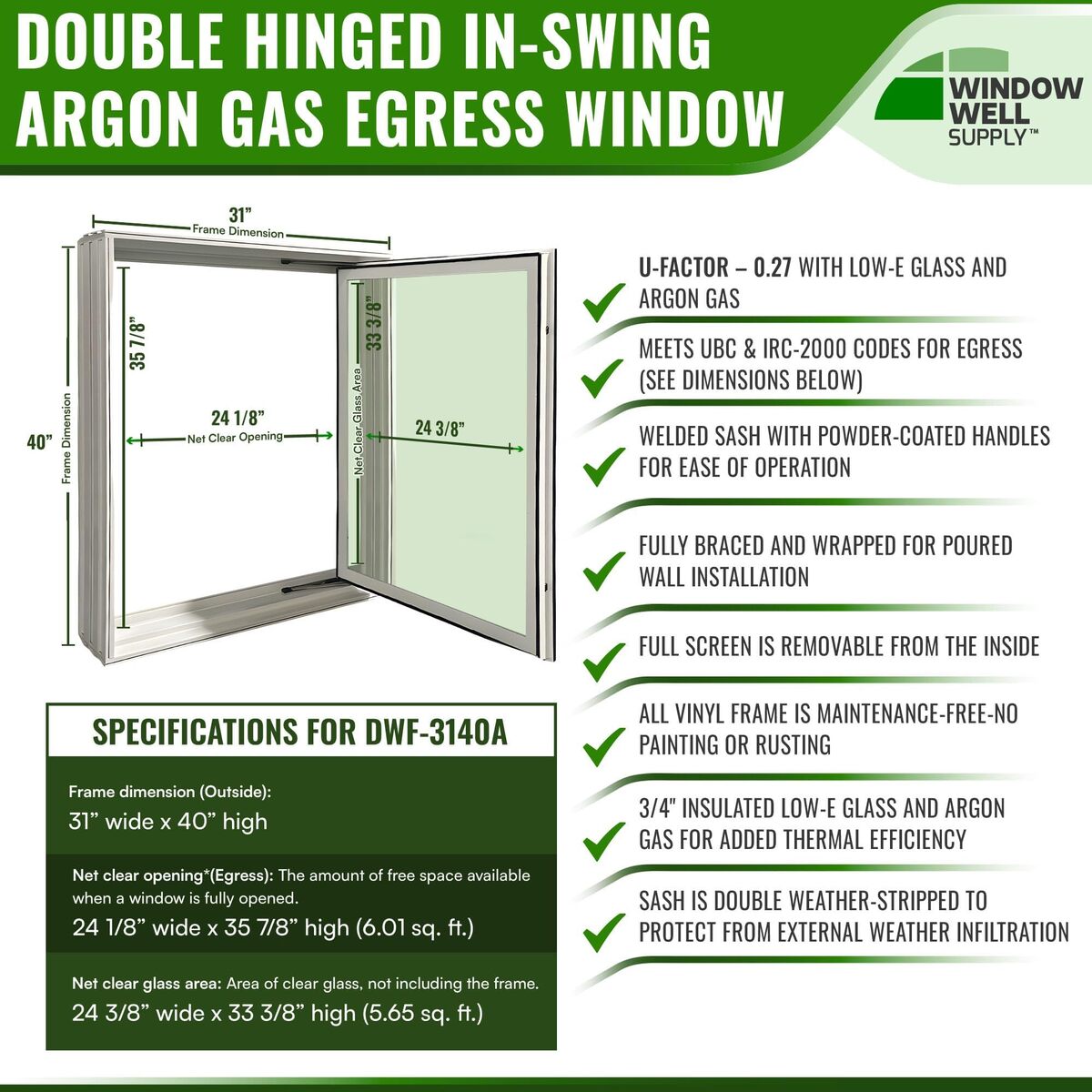 Complete Basement Egress Windows Kit - Window Covers - Egress Window Well Kit wi