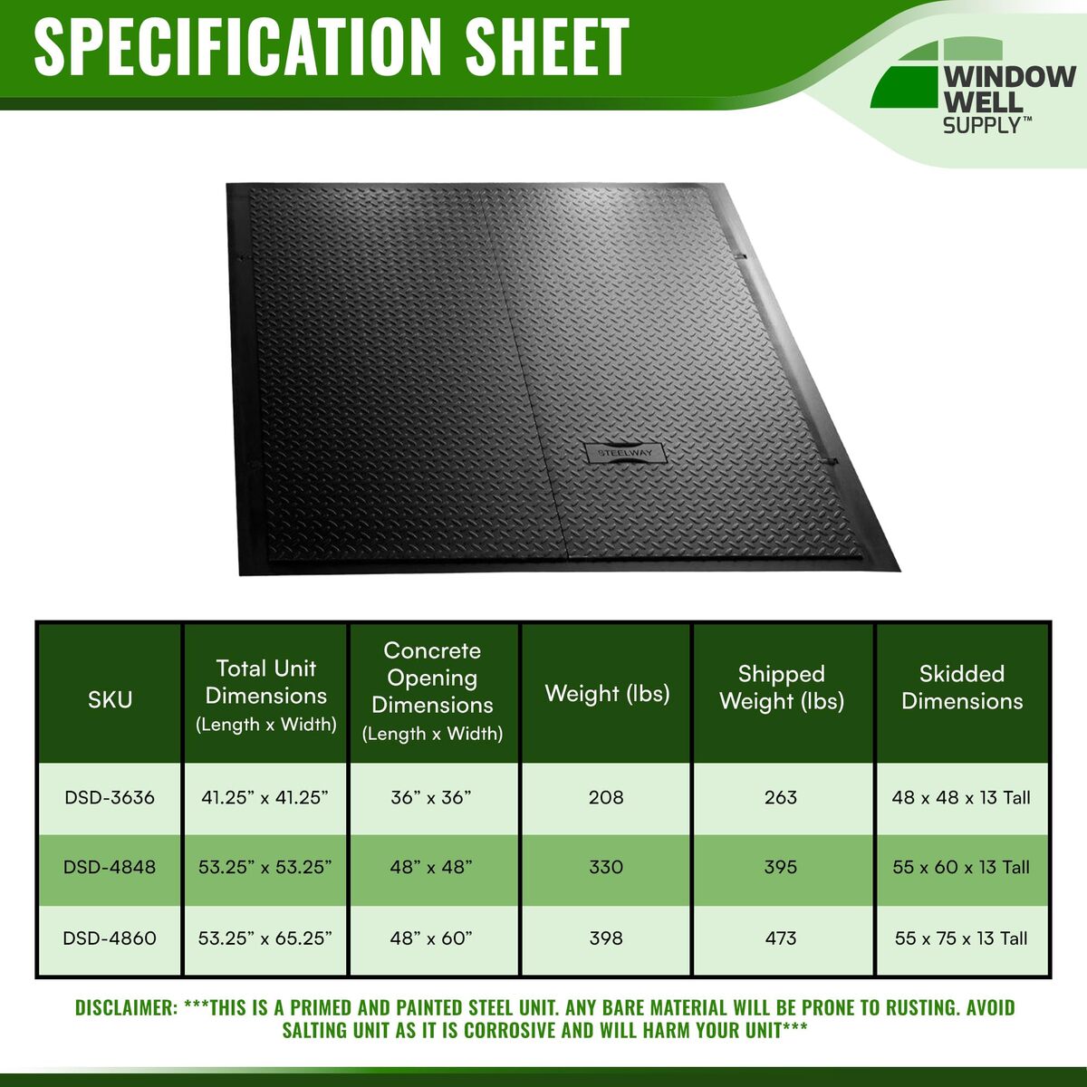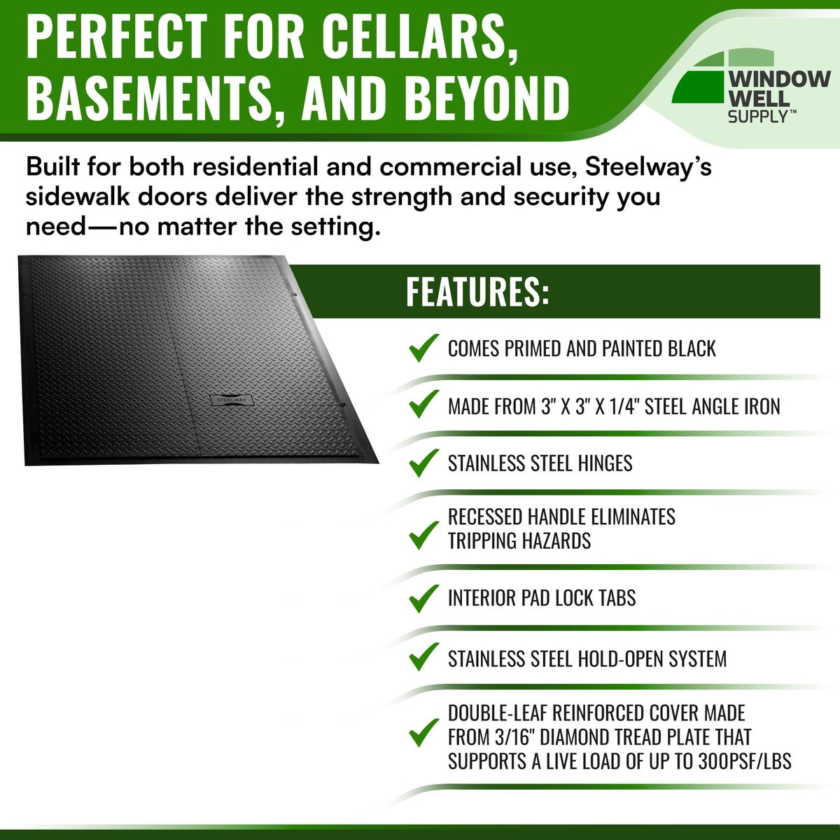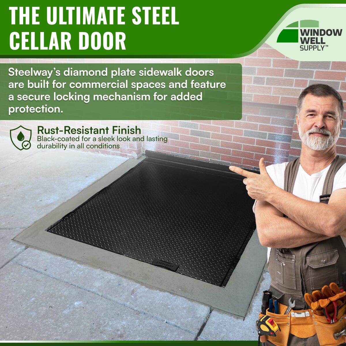 Heavy-Duty Steelway Black Diamond Plate Sidewalk Door - Secure Metal Access for Cellar and Basement Entry, Sidewalk Diamond Plate Covers
