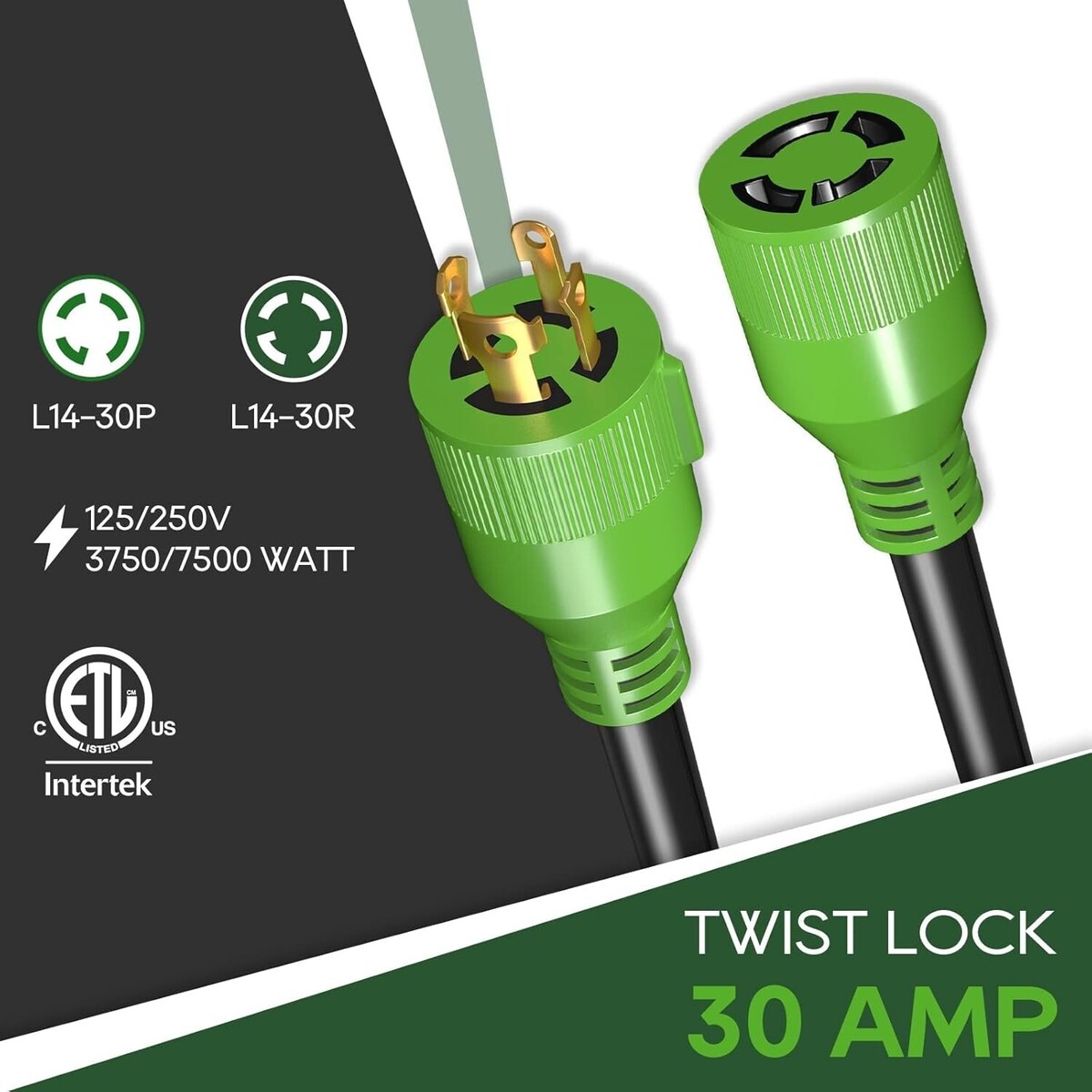 Quality Cable ? NEMA L14-30P to L14-30R SJTW 10 Gauge 4 Prong 40FT generator extension cord 125/250V. Deliver power from your generator to your end-use device.
