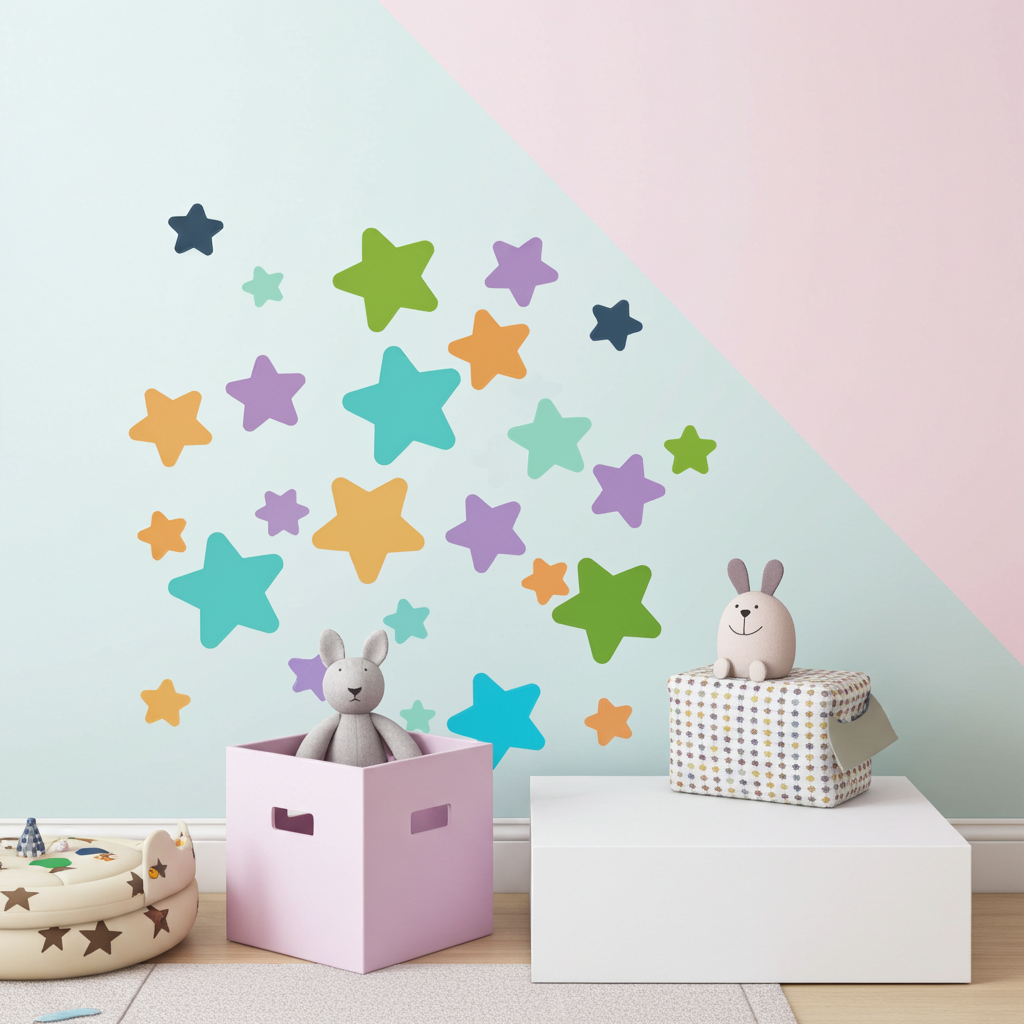 * These Colorful Star Wall Decals come in 24 multicolor options, perfect for decorating your child's room.