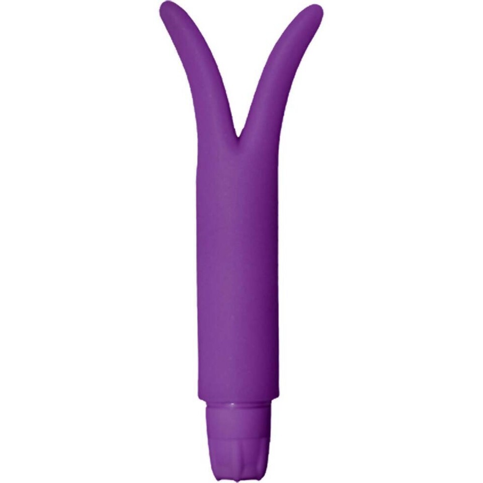 Sleek and compact massager perfectly delivers the buzz throughout its two pleasure prongs.