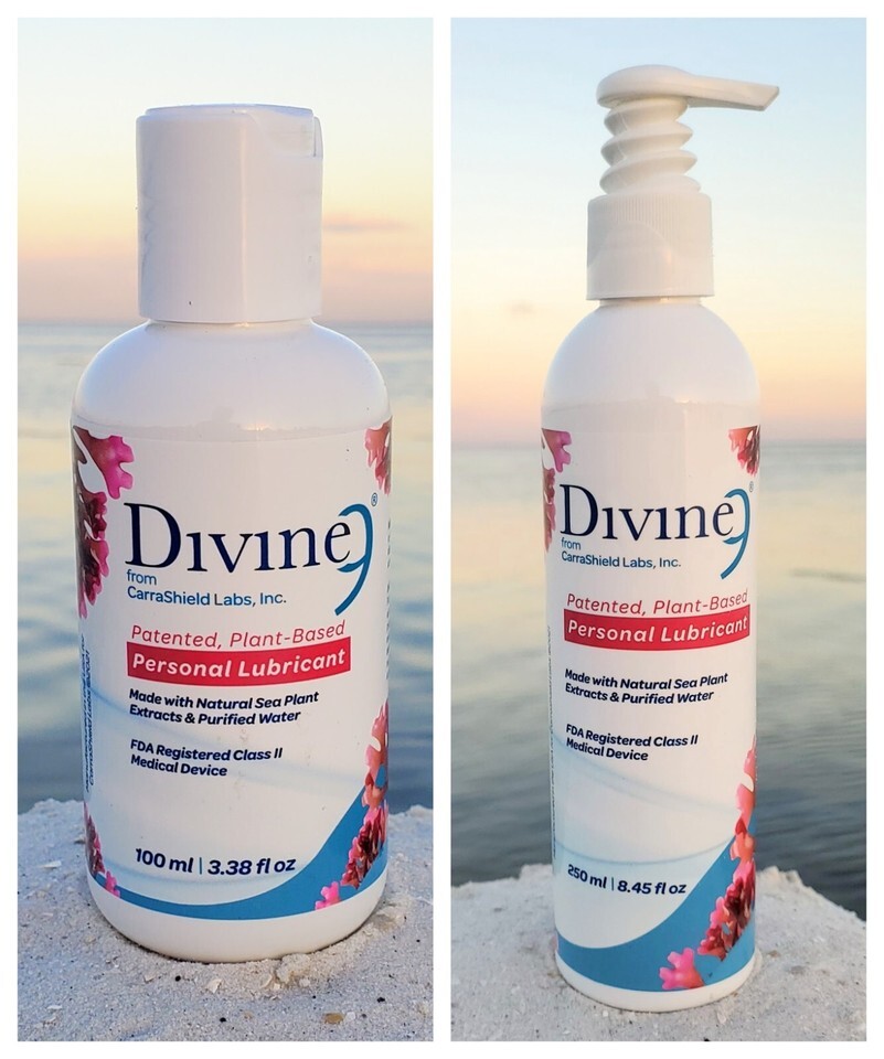 Divine 9 Water Based Lubricant is a water based personal lubricant containing our proprietary blend of sea algae extracts. Divine 9 is so unique and special it has been granted a U.S. Patent and is also patented in all the countries of the European Union, South Korea and Japan. Divine 9 Lubricant provides an intense skin on skin sensation for the ultimate sensual experience and evaporates cleanly, without the sticky feel of other chemical based lubricants. The special carrageenan in Divine 9 acts as a natural skin moisturizer so no need to wash it off when you are done like so many other brands. Divine 9 is great for both intimate encounters and whole body massage. After you have used Divine 9 and it begins to disappear, adding a small amount of water will allow the slippery sensation to return. The 8 ounces bottle is convenient to use and has nightstand friendly labeling that little ones will not question if you leave it sitting out. Divine 9 is the first and only personal lubricant undergoing government sponsored studies on its ability to provide protection against HPV. Divine 9 is a water based lubricant made with a unique plant extract that may act as a protective barrier to prevent HPV from attaching to the cells of your body. In addition to all the potential health benefits, the natural sea plant extracts called CarraShield creates a slippery yet intimate feel that will enhance your pleasure. Divine 9 personal lubricant with CarraShield provides an intense skin on skin sensation for the ultimate sensual experience. Directions: for the ultimate sensual experience, apply the desired amount to intimate areas. Vary your touch to suit your mood. Also excellent for massage. Finally, allow yourself to indulge in more exciting and intense pleasure while enjoying peace of mind from using Carragel. Divine 9 with Carragel provides an intense skin on skin sensation for the ultimate sensual experience. Carragel is a type of natural carrageenan made from a proprietary blend of natural plant extracts from the sea. Divine 9 Lubricant is made with: no fragrances. No parabens. No glycerins. Compatible with natural rubber latex condoms and polyisoprene condoms. Directions: For the ultimate sensual experience, apply the desired amount to intimate areas. Vary your touch to suit your mood. Also excellent for massage. Ingredients: Purified Water, Seaweed extract Carrageenan, propylene glycol, saccharin, citric acid. Store at room temperature. Made in the USA