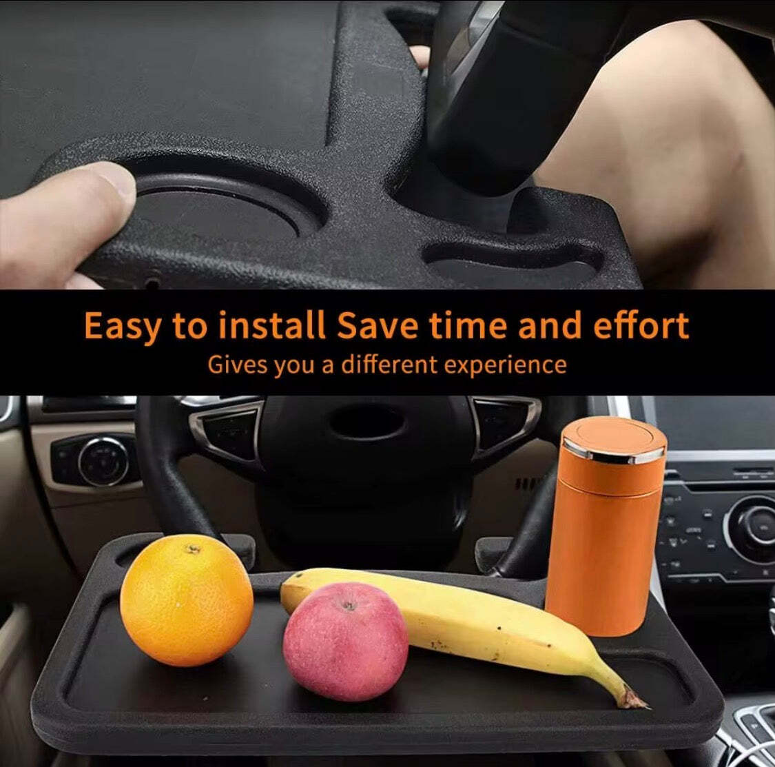 Car Steering Wheel Tray for Food or Laptop with Cup Holder and Dining Snack Tabl