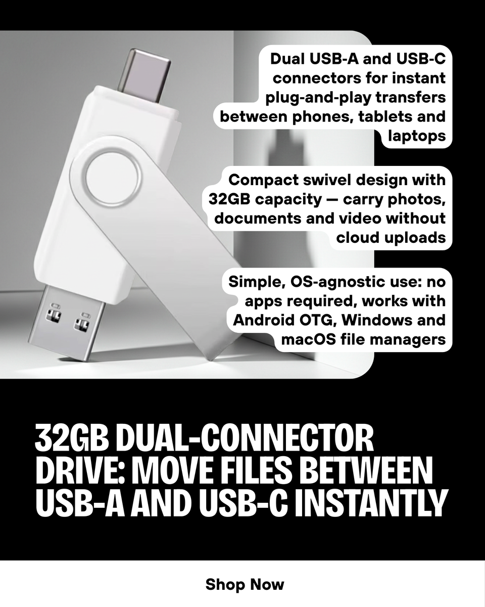 This USB and Type C drive offers dual connectivity, 32 GB capacity, and a portable design. It is perfect for easy data transfer and convenient storage. ?