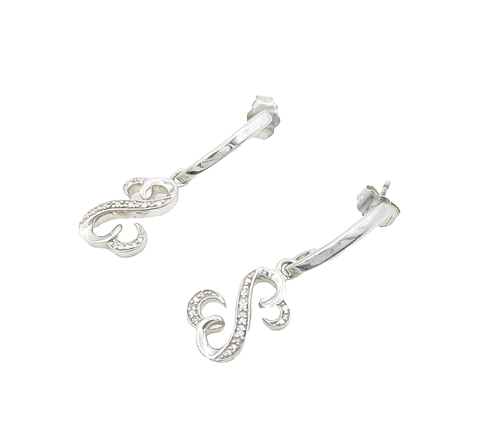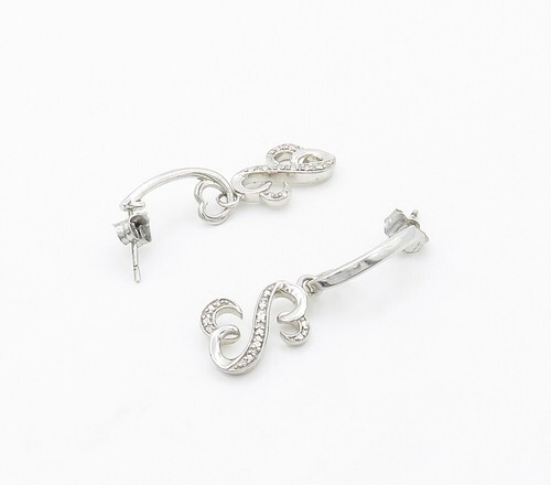 925 Sterling Silver Shiny Genuine Diamonds Love Hearts Drop Earrings EG8213