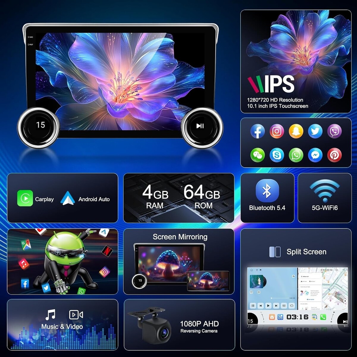 Rearview Camera,MIC,DSP,DVR,DTV,TPMS,OBD2,DAB+ |