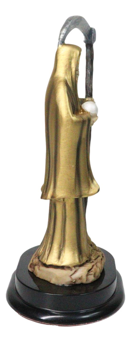 Gold Robe Santa Muerte With Scythe Patroness Of Wealth Decorative Figurine 5"H