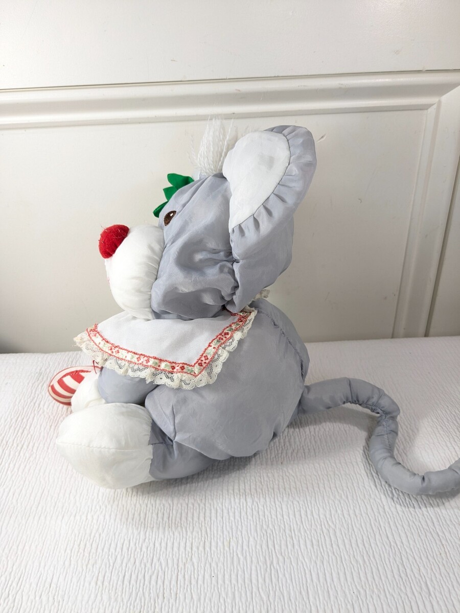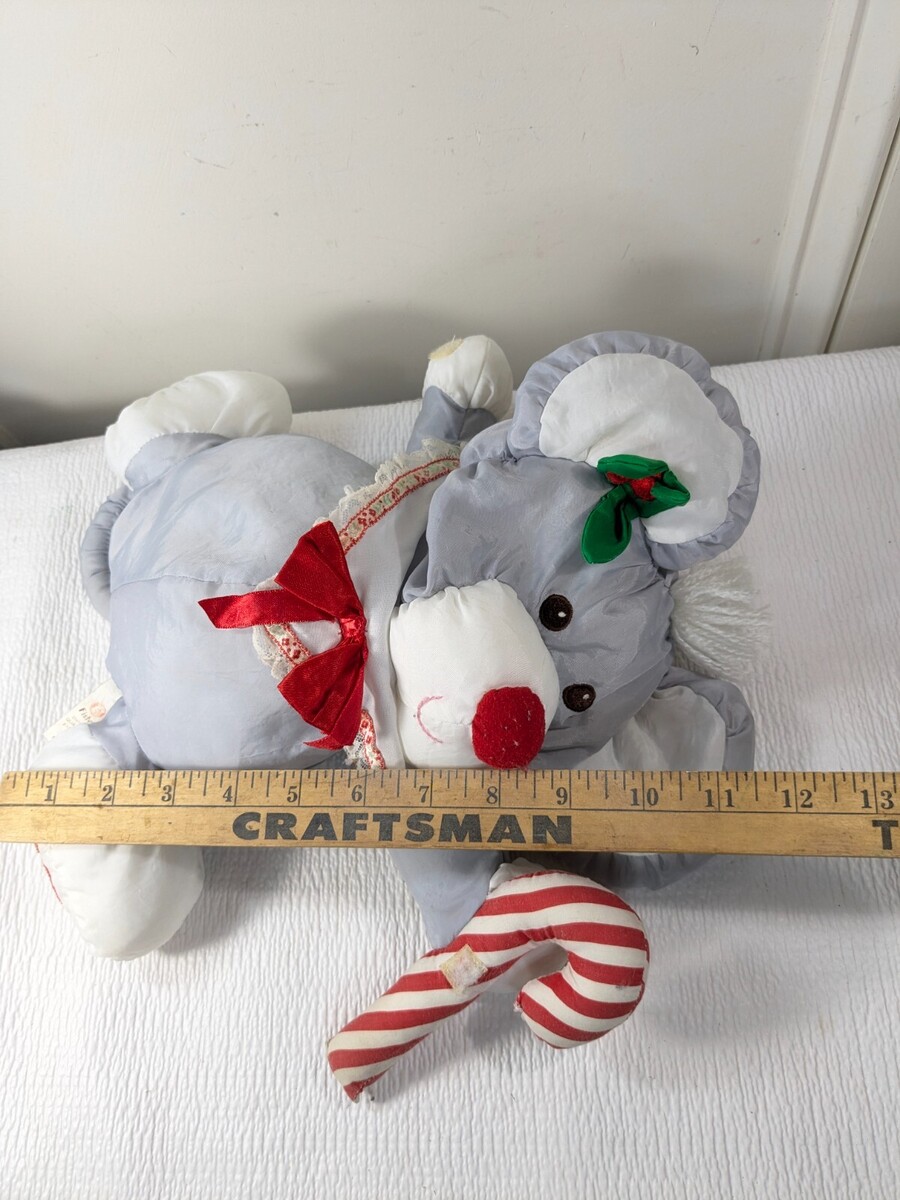 Vintage Puffalumps Christmas Mouse Plush Candy Cane Fisher Price 1987 Gray Nylon