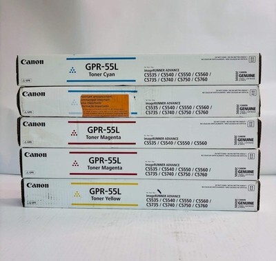 5 Genuine Canon iRA C5535i,C5535i II Cyan, Magenta Yellow Toners GPR-55L CMY