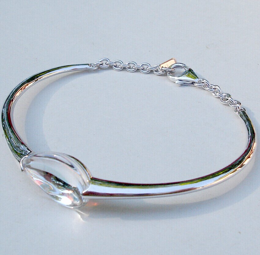 Baccarat Fleurs De Psydelic Clear Crystal Sterling Silver Bracelet Size 6" NEW