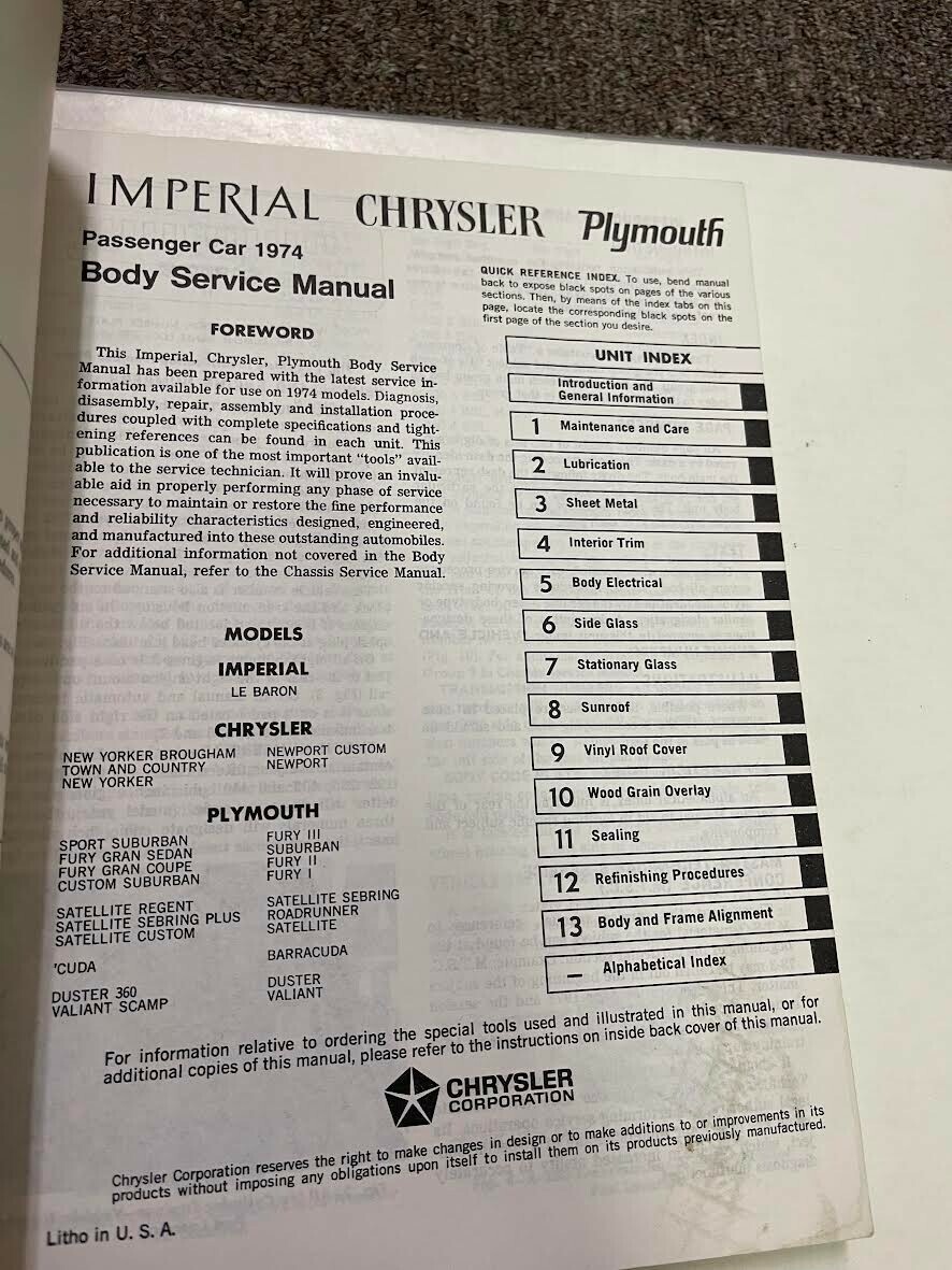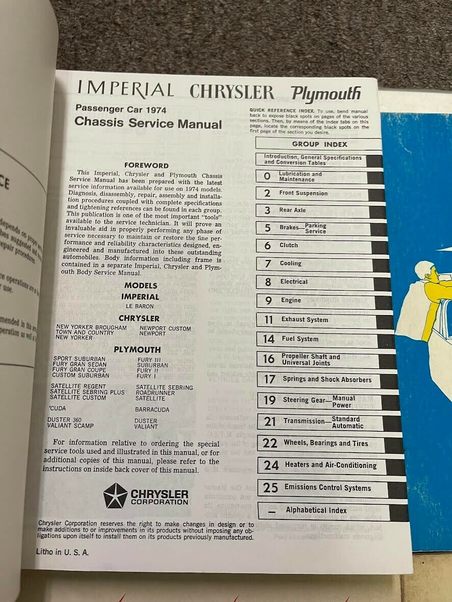 Full of information and illustrations, covers everything, step by step instructions, assembly/disassembly, exploded illustrations/diagrams/troubleshooting, great manual to have when owning/servicing a Chrysler and will be a great aid to keep your CAR on the road. These manuals will save you money in repairs/service. A must have if you own one of these vehicles.