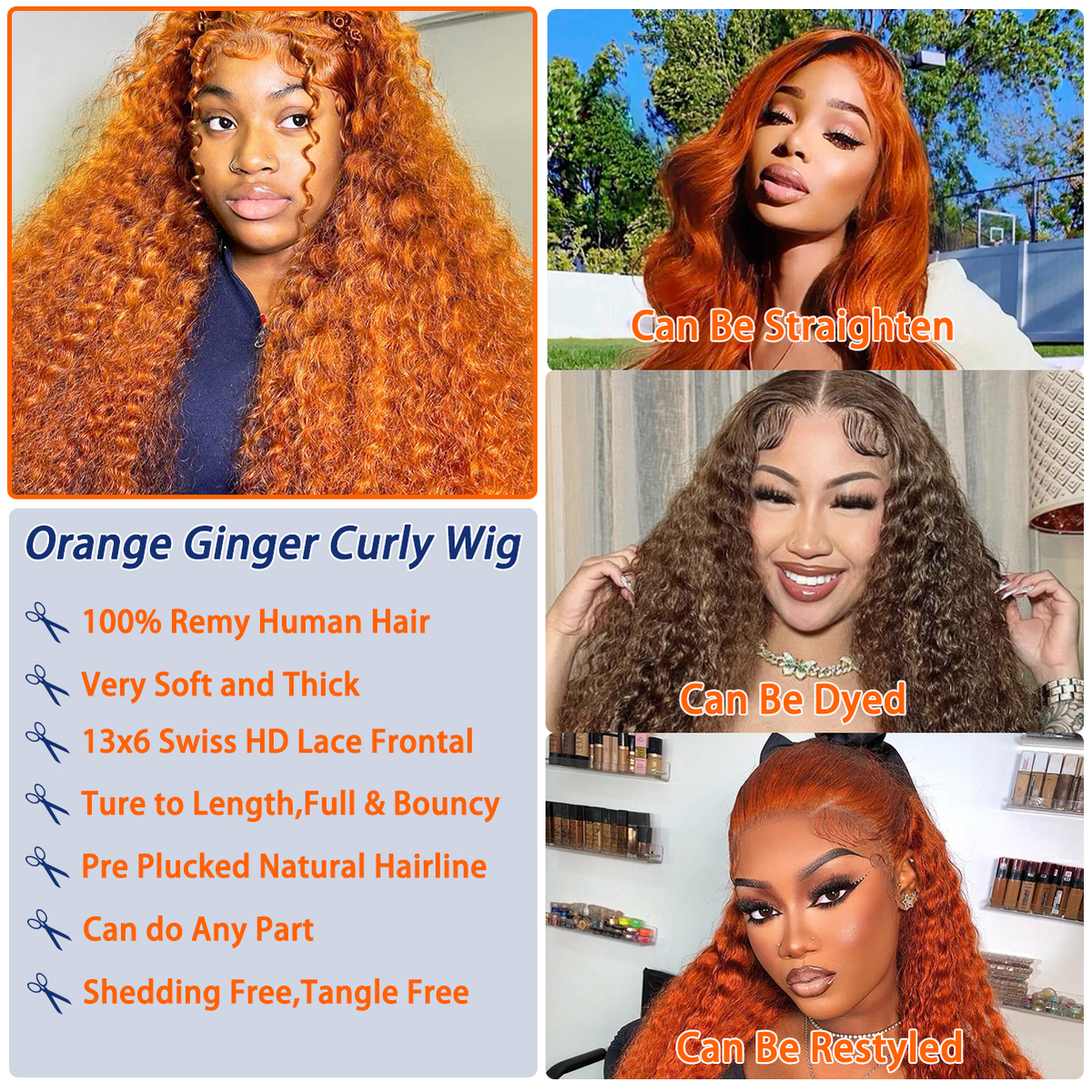 Ginger Orange Deep Wave Wig Suit for any Occasion: Ginger 13x4 Lace Front Wigs Can Bring You a Perfect Look for Daily Life, Working, Appointments, Weddings, Party, Travel, School, Cosplay, Ginger Orange Wigs for Women Can Be Used as Christmas, New Year and Birthday Gifts for Parents and Friends