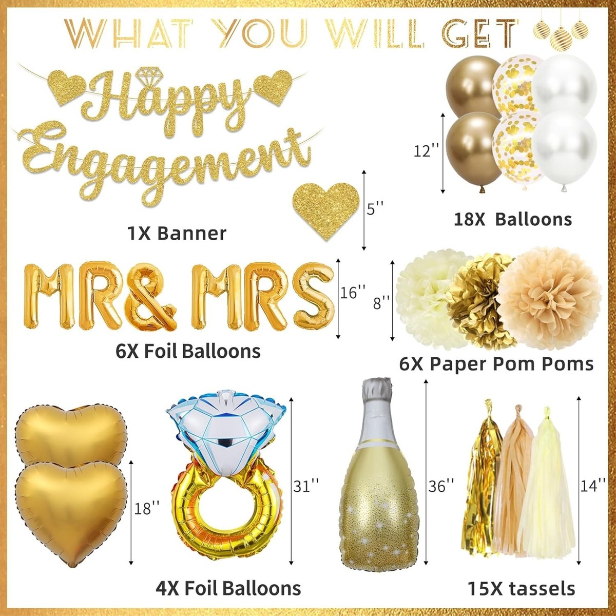 Engagement Celebration Decorations - Gold and 50 similar items
