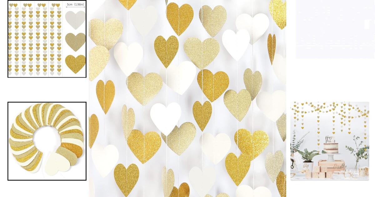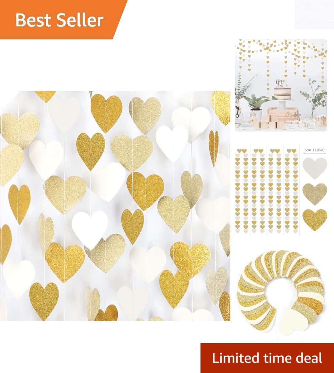 Versatile White-Gold Heart Garland - 52Ft Eco-Friendly Banners for Celebrations