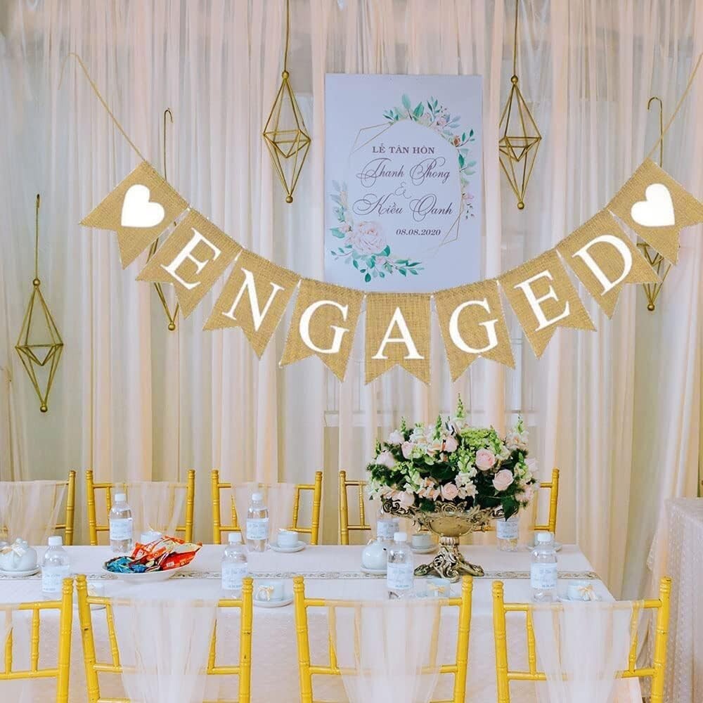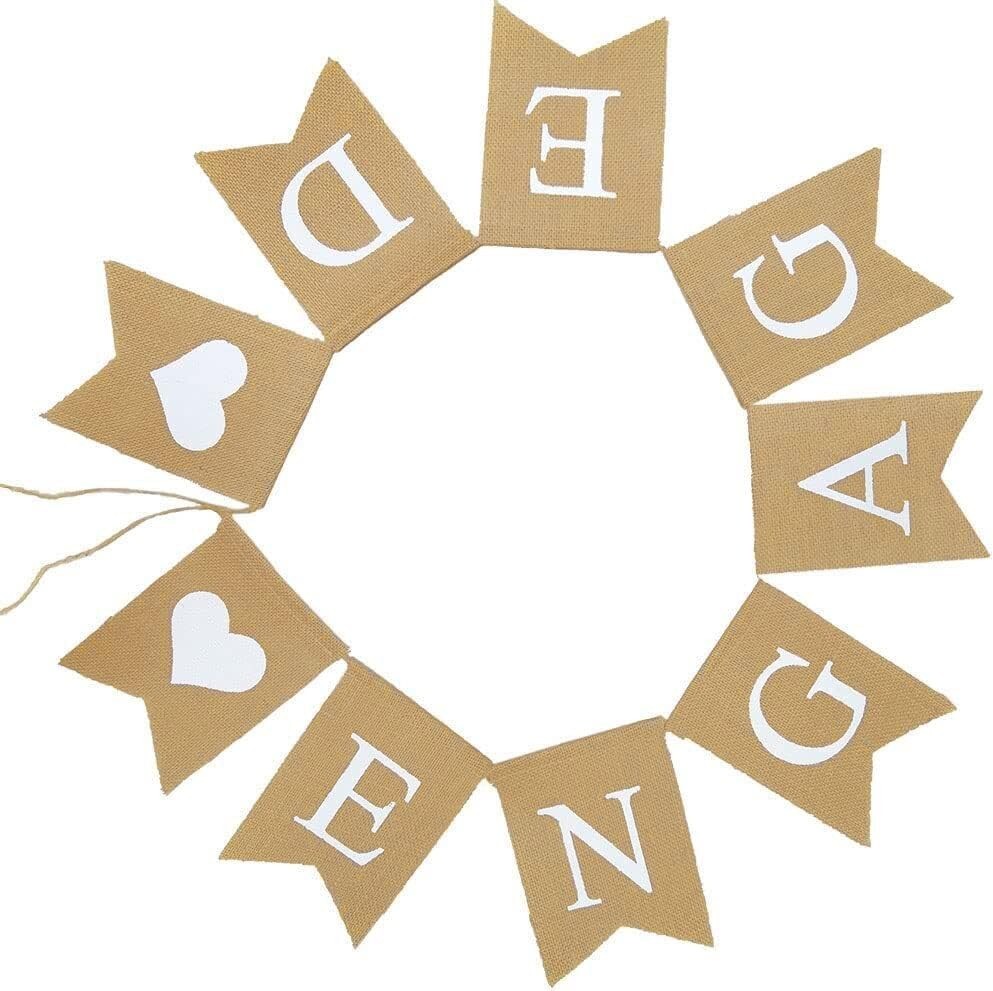 Elevate your engagement celebration with this stunning decor that speaks volumes about your commitment. Order your Sturdy Jute Engaged Banner today and add a touch of charm to your love story!