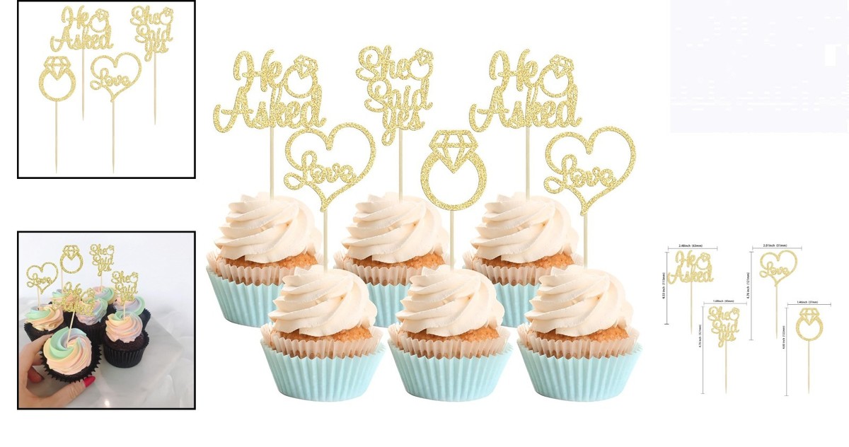 Bring a touch of elegance and joy to your special occasions with our 'He Asked, She Said Yes' cupcake toppers. These exquisite decorations provide the perfect finishing touch to your sweet treats, elevating them from simple desserts to enchanting experiences. Embrace the essence of celebration and create memorable moments that you and your loved ones will cherish forever.