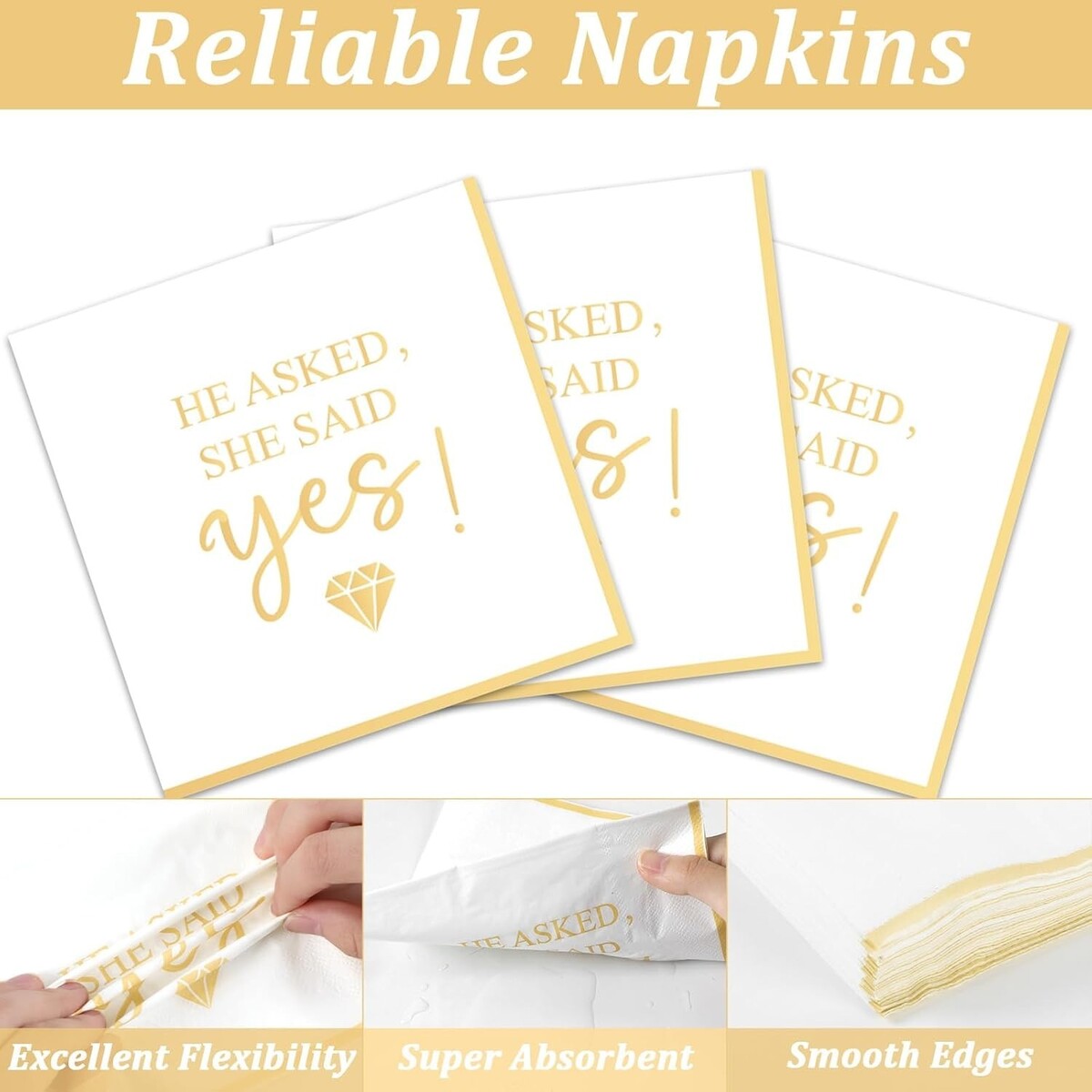 Eye-catching Design: Features the iconic "HE ASKED SHE SAID YES" text, complemented by elegant ring and diamond illustrations, symbolizing love and commitment.