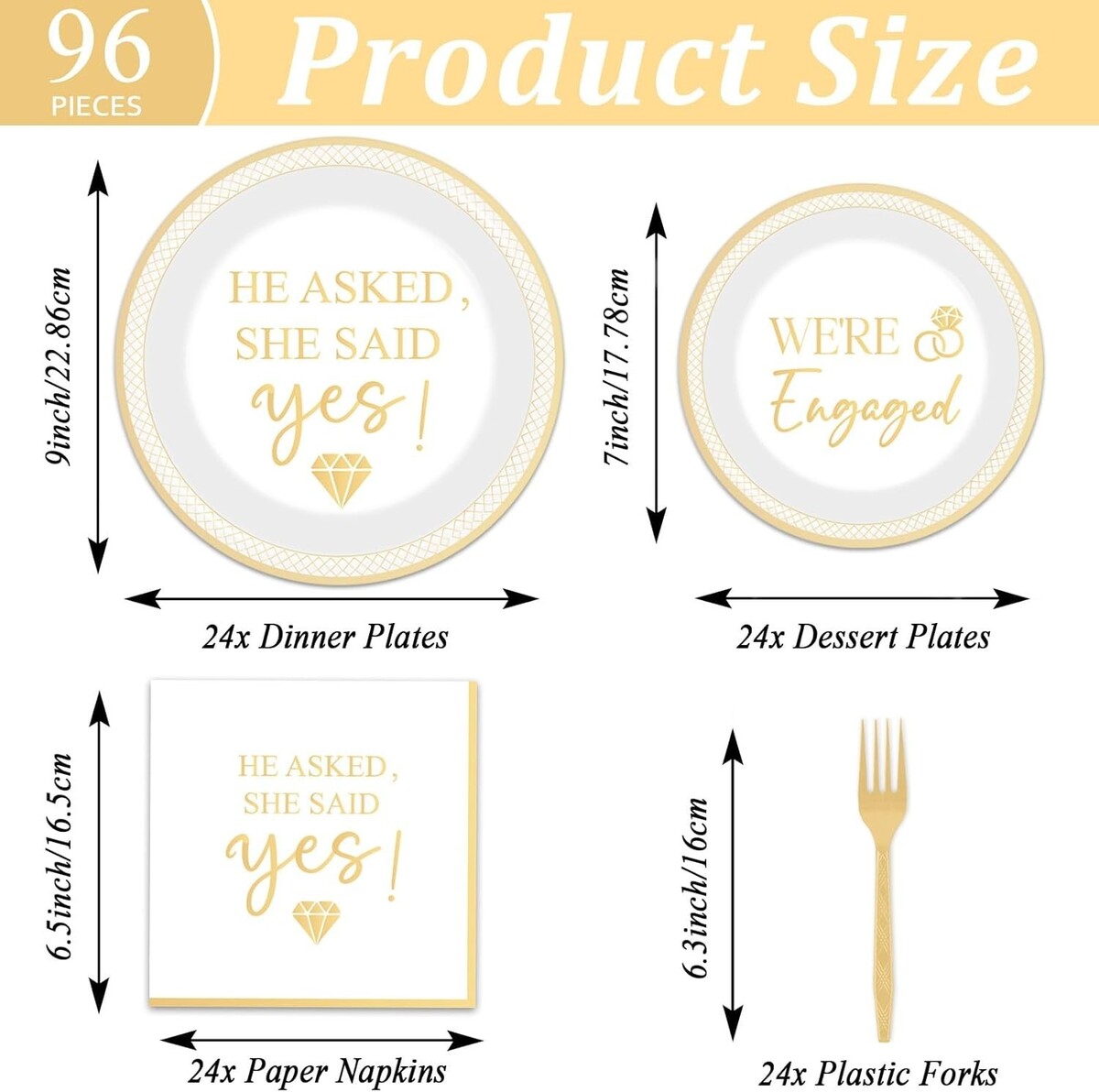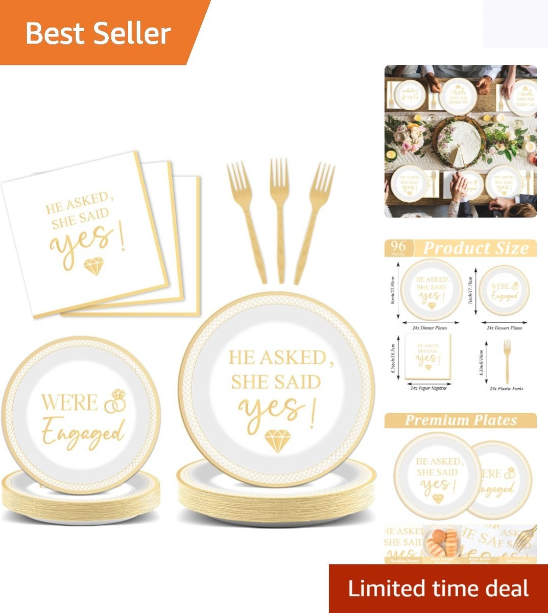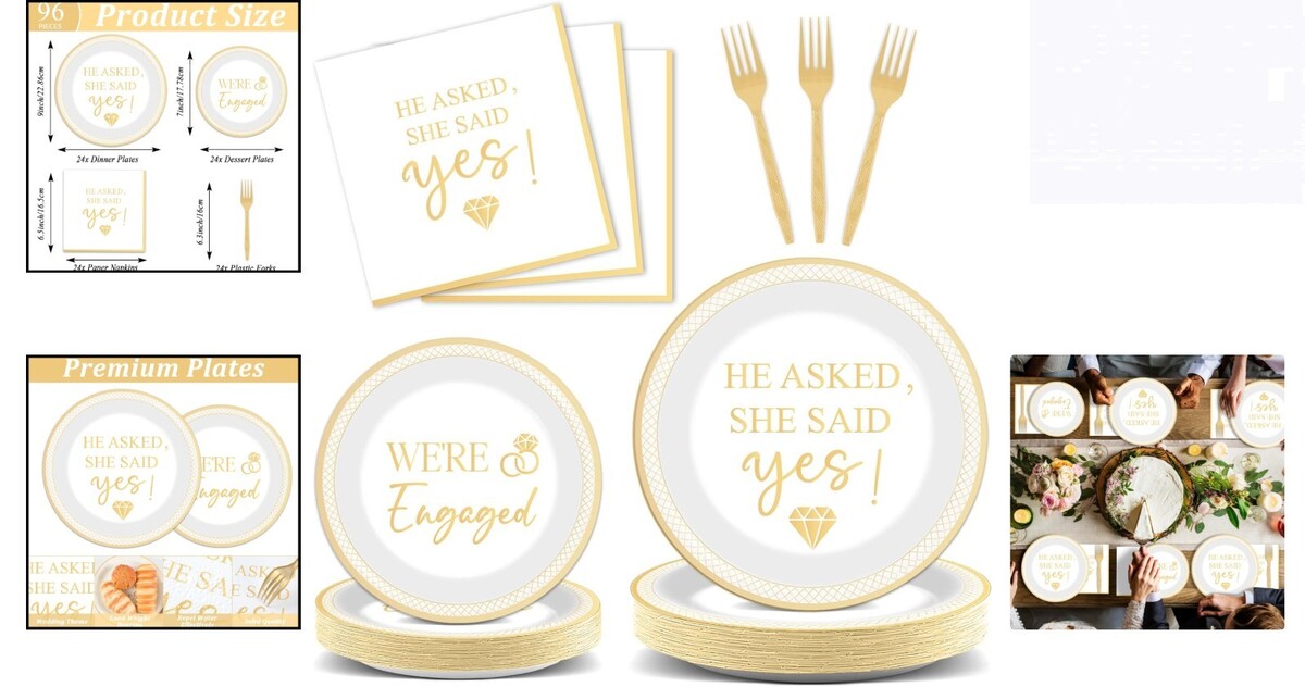 Stunning 96-Piece She Said Yes Party Set for 24 Guests - Paper Plates & Napkins
