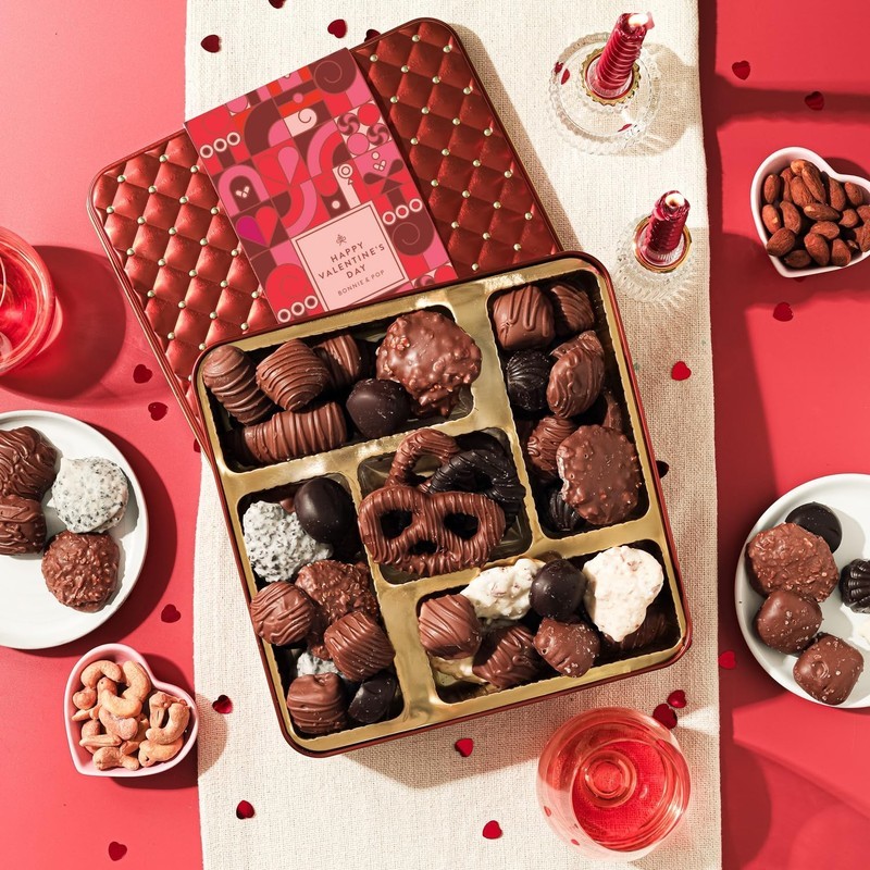 Delicious Valentine?s Day Chocolate Gift Tin: Filled with premium milk and dark chocolates made for gifting on Valentine?s Day, anniversaries, birthdays, anniversaries, or just because.