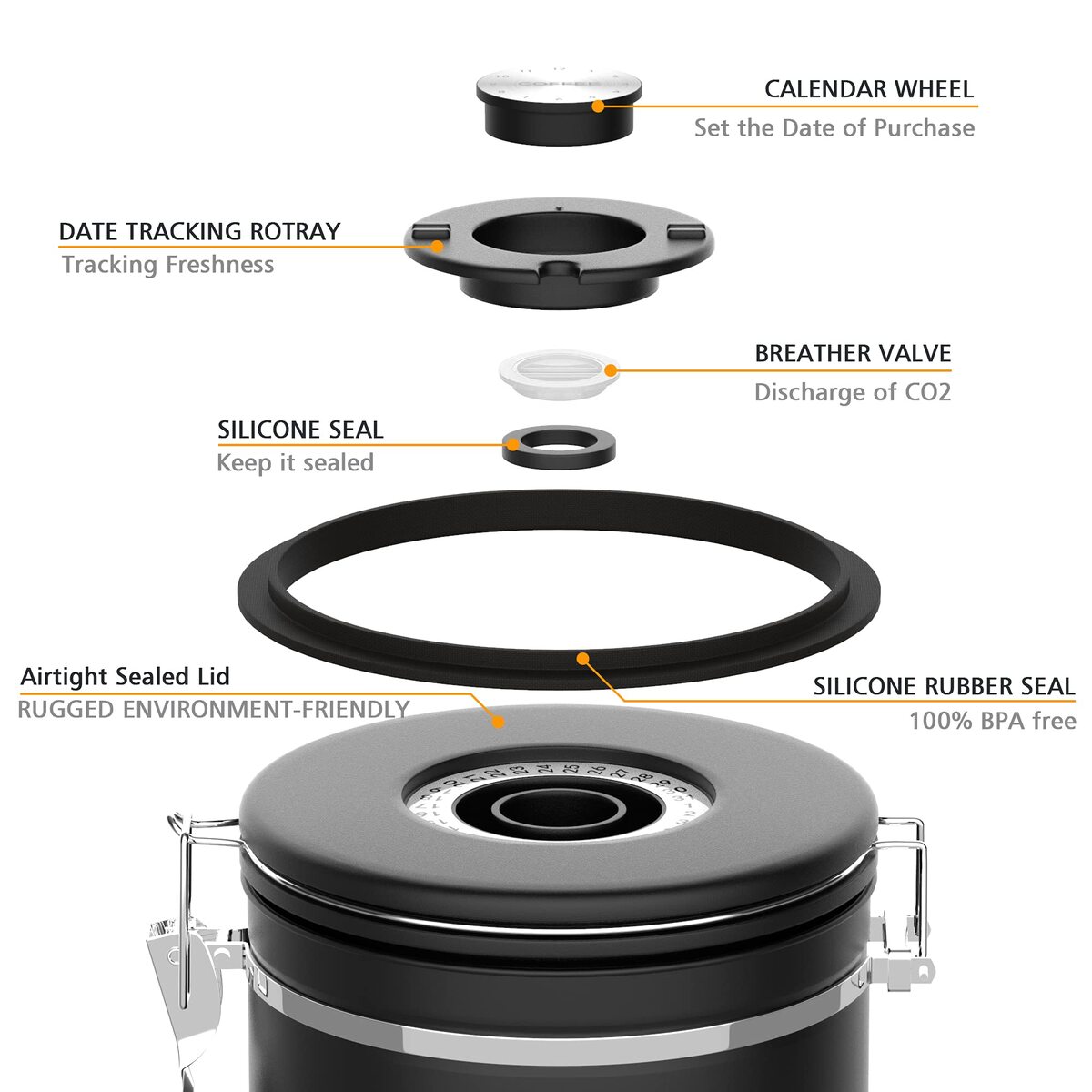 [Food-grade 304 stainless steel material]: Miscedence coffee canister are made of food-grade 304 stainless steel. Compared with the airtight container made of glass and plastic on the market, our container are stronger, less brittle, and rust-free and safer.,?Transparent window design?When you are looking for items, our airtight jars can see at a glance what food is stored in the airtight jar, while other models you can't know what's inside until you open it,?One-way CO2 valve?A one-way CO2 valve is installed at the exhaust port of the lid, which can effectively release the CO2 in the tank and prevent air from entering the tank, thereby ensuring the freshness of the coffee beans. Tastes unchanged,?Date tracking and airtightness?The coffee canister is designed with a lock, the lid is equipped with a silicone gasket, and there is a date tracking wheel on the top of the lid. The shelf life can be set when the coffee is loaded. The next time you open it, you will know how long it will be stored.,?Wide use?Miscedence coffee cans can be used to store coffee beans, coffee powder, sugar, tea, nuts and other foods that need to be kept fresh. Can be used in a coffee shop, home kitchen, outdoor office, or as a gift to a friend. In addition, we also have a mini coffee can, which can be used when going out.