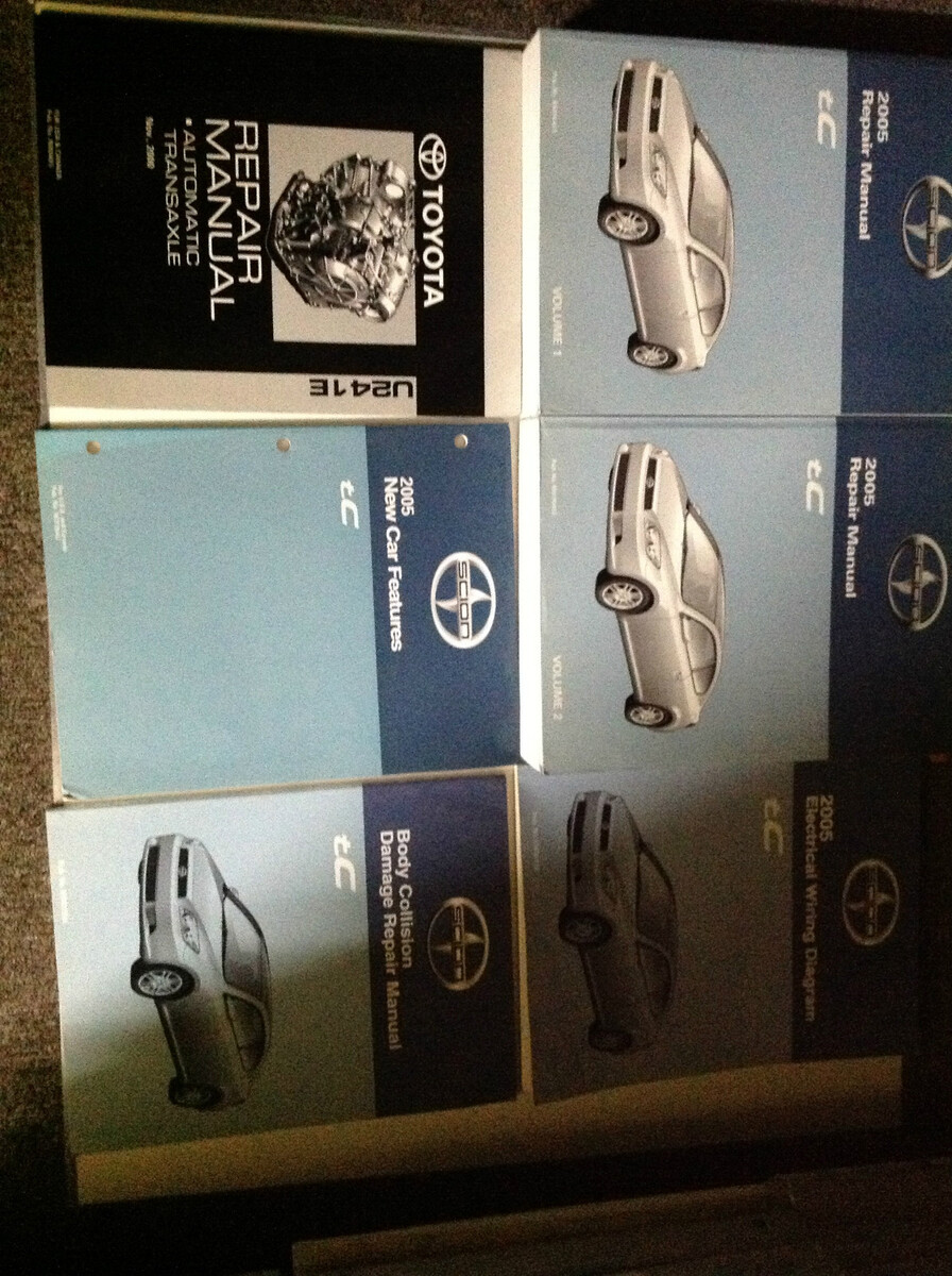 2005 TOYOTA Scion TC FACTORY Service Manual 2 Volume Set, Electrical Wiring Diagrams Manual, New Car Features Manual, Body Manual, and the Automatic Transaxle Repair Manual.