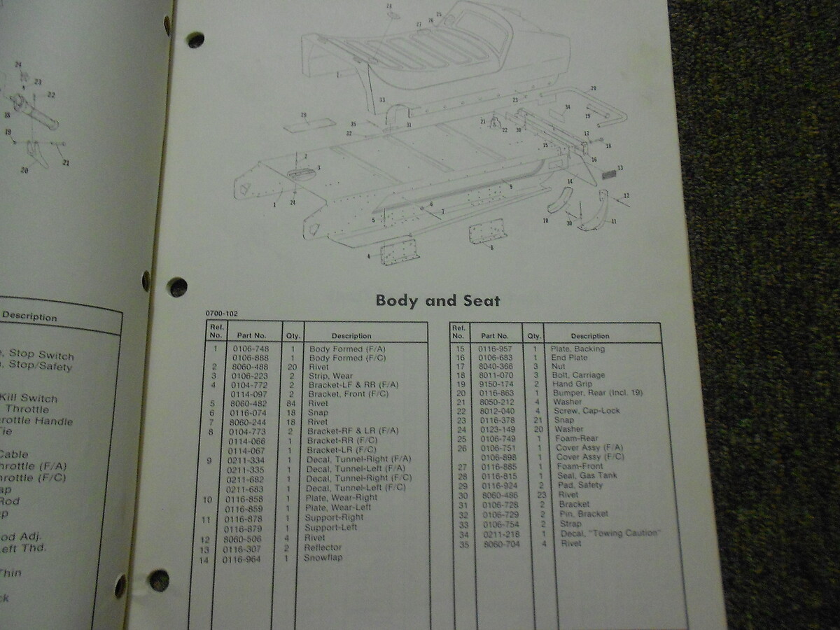 1978 Manuale delle parti illustrate per patine di gatto artico