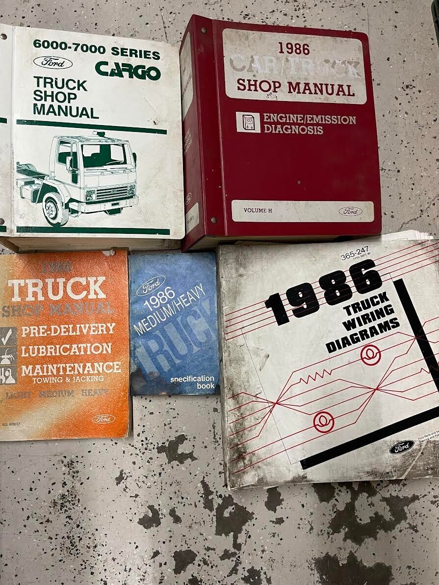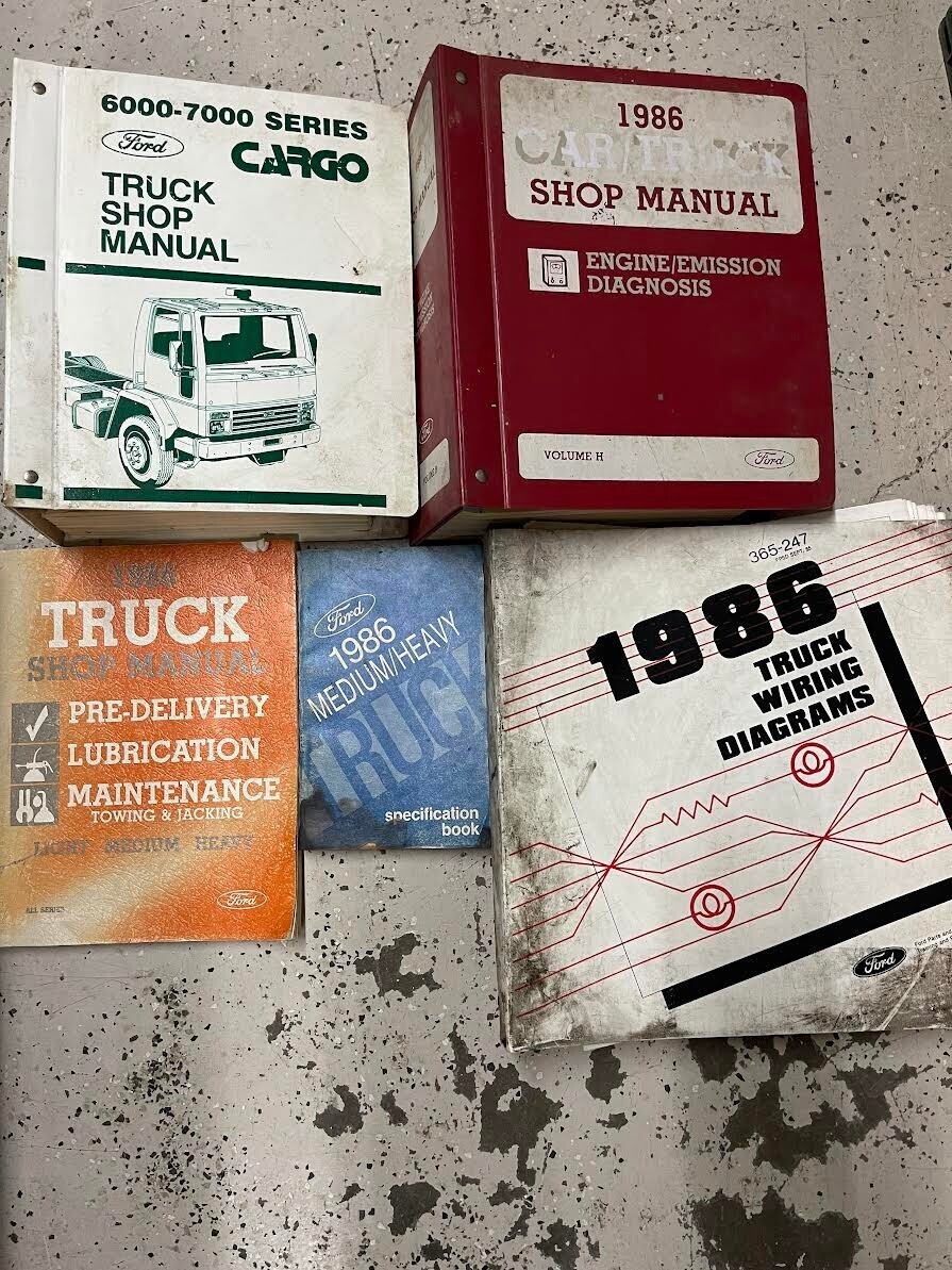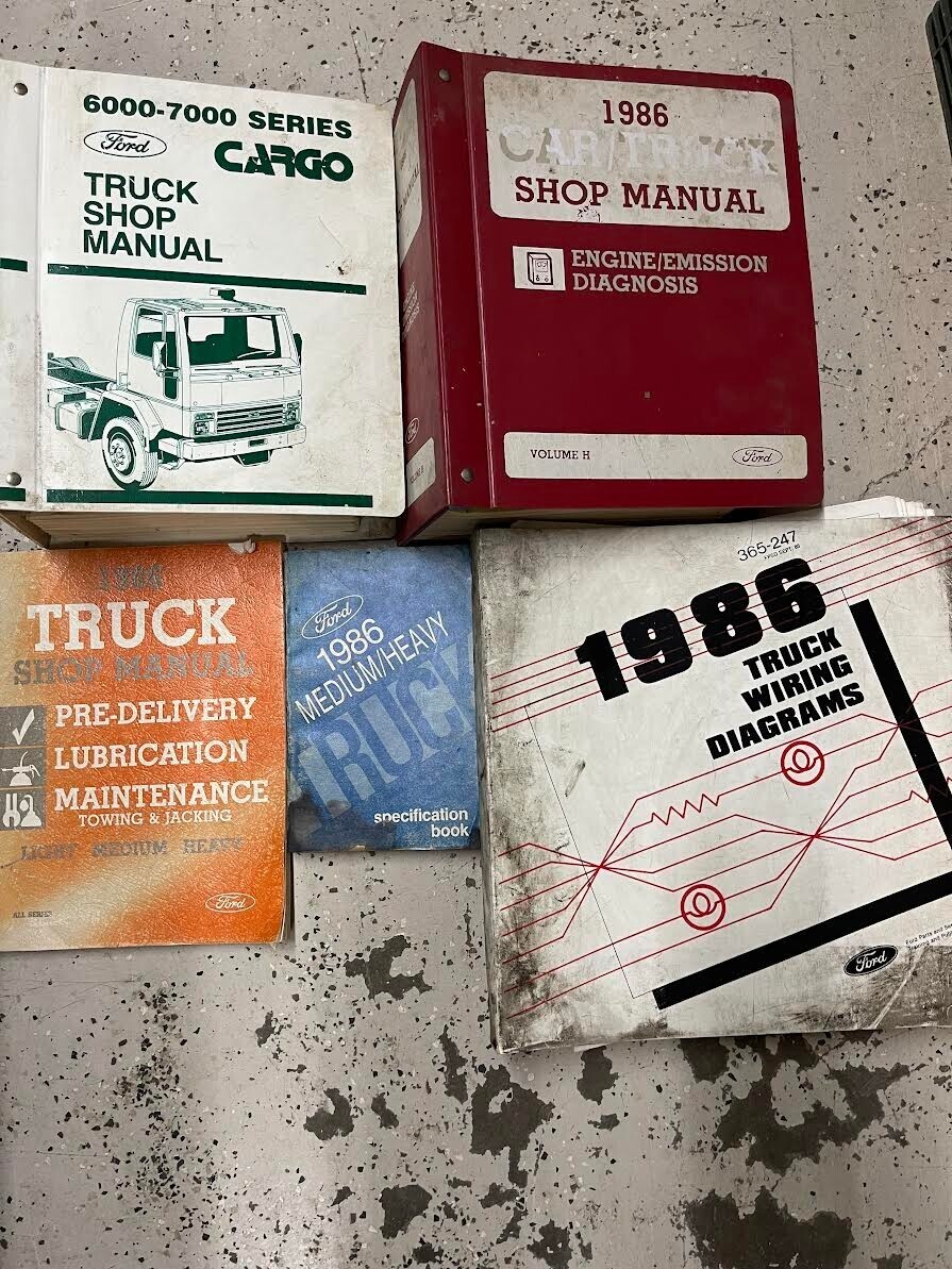 1986 Ford CARGO TRUCK 6000-7000 SERVICE MANUAL, WIRING DIAGRAM MANUAL,ENGINE EMISSION DIAGNOSIS MANUAL, PRE DELIVERY MANUAL, SPECIFICATIONS MANUAL