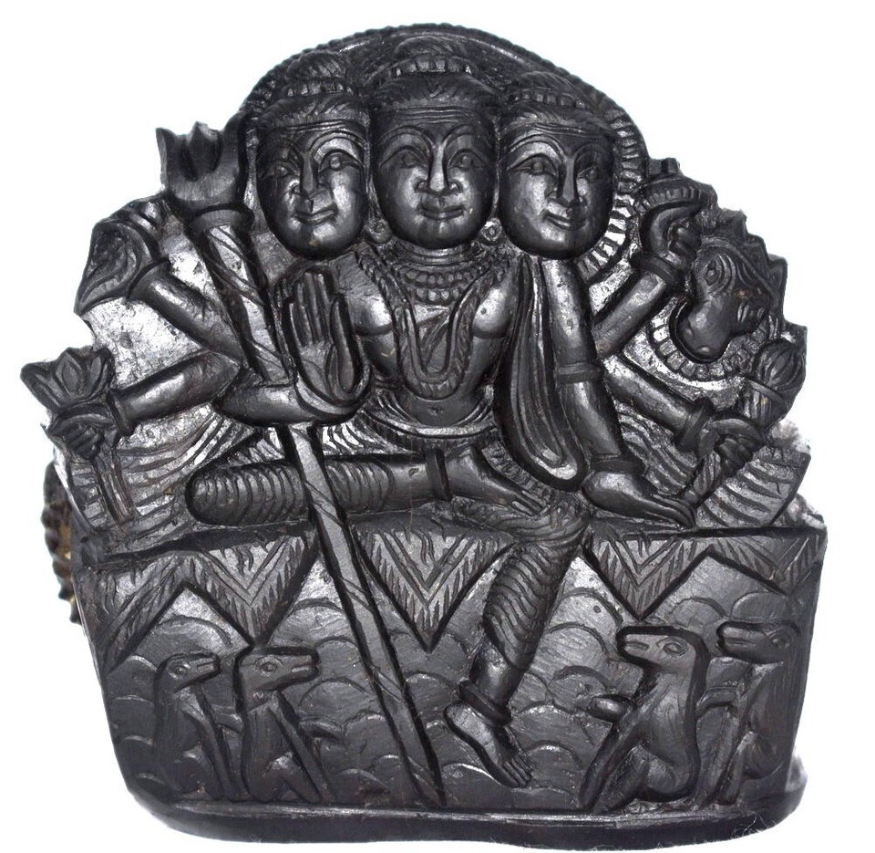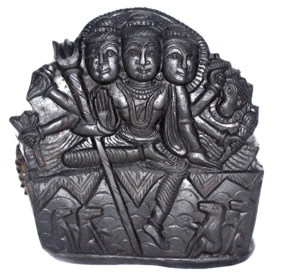 Lord Dattatreya Carved on Natural Sudarshan Shaligram of Gandaki River Nepal